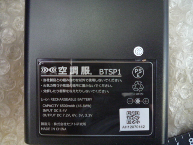 通電のみ確認しました(空調服を持ち合わせてないので動作確認できません)