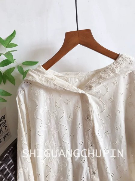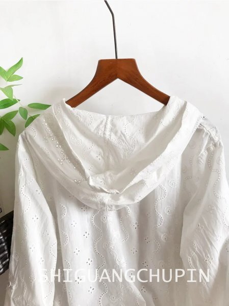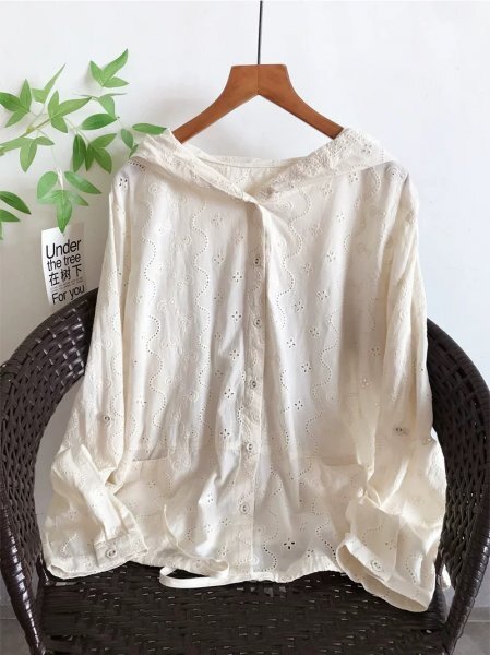 sg 2509 フードジャンーパー トップス チュニック ワイシャツ 綿100% ゆったり オシャレ フリーサイズ ナチュラル 前開け 全刺花柄2