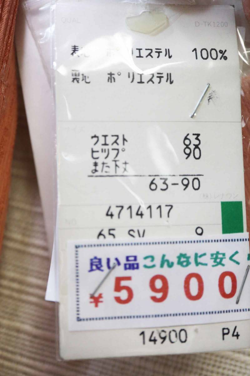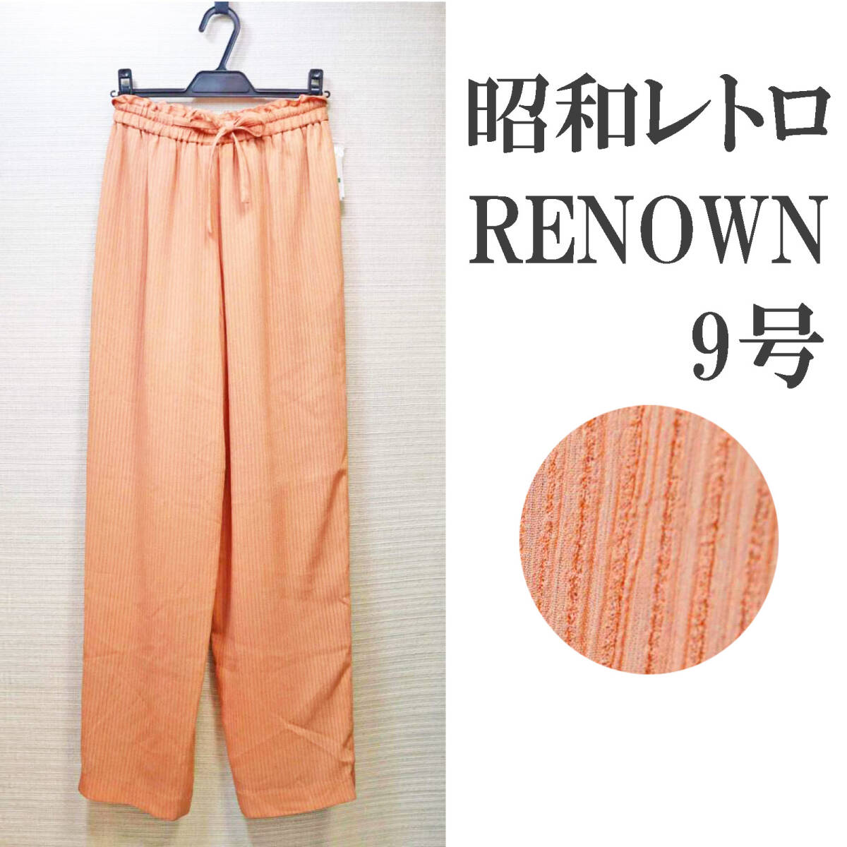 レナウンのパンツ。レディース。 9号。ウエストゴム。 ファスナーなし。 ヒモあり。 裏地あり。 脇ポケットあり。 シャリ感のあるポリエステル地。 薄手。春夏向き。 股上は深いです。 ◆メーカー希望小売価格:@14900 ◆素材 :ポリエステル100 (裏地‥ポリエステル100) ◆実寸 :ウエスト63 ヒップ90 股上38 股下73 わたり33 裾幅22 ※こちらのお品物は、デッドストックです。 裾が少し汚れています。落札の際は、その旨ご了承下さい。 | |||