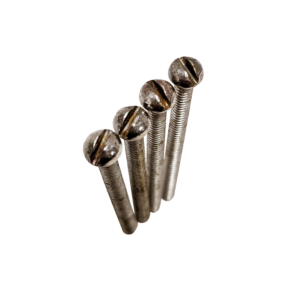 オールドのギターやベースのネジに見られるメッキの光沢や曇りの中にサビが入り混じっていることに着目し、再現しました。