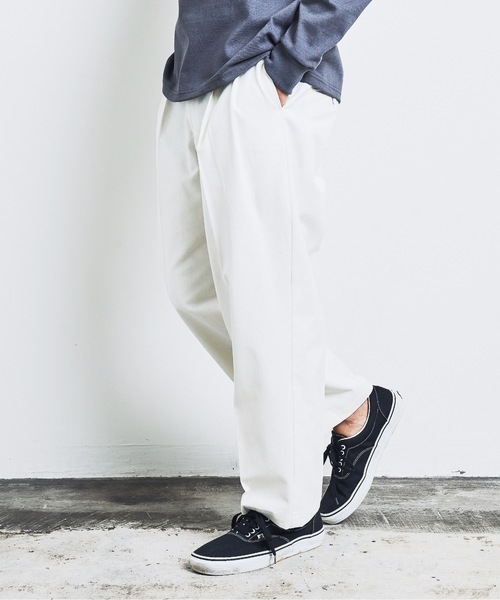キーワード:チノパン メンズ センタープレス テーパード ハイウエスト フルレングス ワイドパンツ 無地