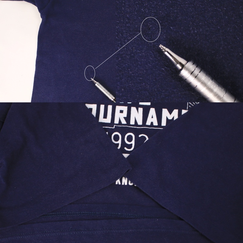 すそのステッチはダブルステッチですが、袖はシングル(ブラインドステッチ)
