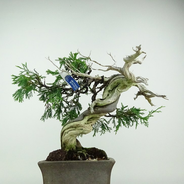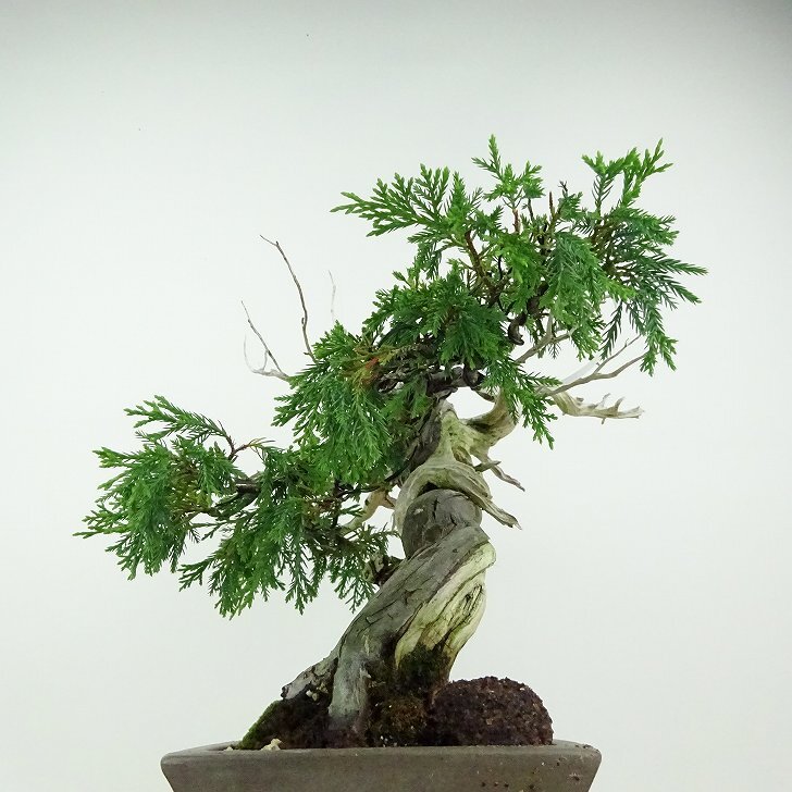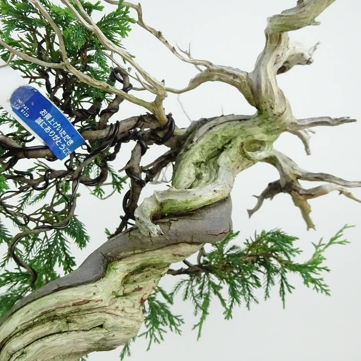 ■植物ですので撮影時期や季節によって剪定などの手入れにより写真から変化がございます。撮影日をご確認のうえ、ご注文ください。 ■年に一度、冬頃にジン・シャリのお手入れをおこなっています。薬品の関係で黄色く変色しているようにみえる場合がありますが徐々に薄れていくので問題はありません。 【真柏盆栽】 シンパクの1番の特徴と言えば、短く締った紐状の葉と、わずかな水吸いでも生き抜くことができる強靱な幹枝です。自然界では積雪や強風などで押しつぶされ木部が露出し、朽ちて白骨化したものが見られます。枝の一部が白骨化したものを神(ジン)、幹の場合は舎利(シャリ)といいます。 |