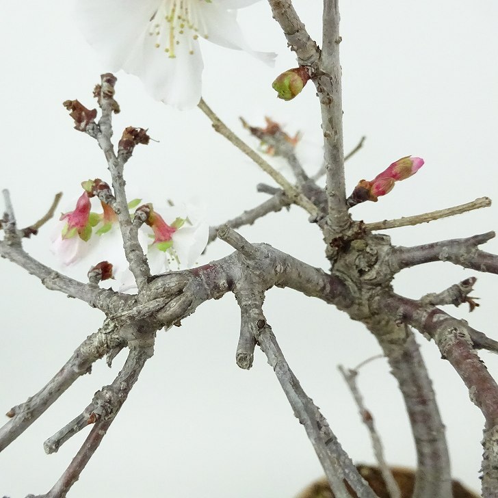 ■植物ですので撮影時期や季節によって剪定などの手入れにより写真から変化がございます。撮影日をご確認のうえ、ご注文ください。 【桜盆栽】 桜の原種は11種確認されており、これらの変性や交雑、園芸種など数えきれないほど沢山の種類や品種があります。一重咲き、八重咲き、枝垂れなど、日本国内だけでも600種以上が確認されています。 〈信濃寒桜〉 白~淡い桃色の小輪の花。秋頃から春にかけてぽつりぽつり少しずつ開花します。 |