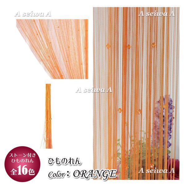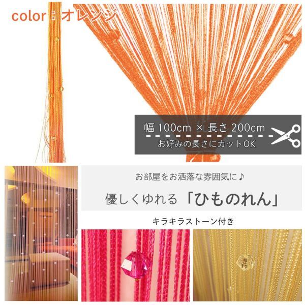 ひものれん 紐のれん ストリングカーテン キラキラストーン付き おしゃれ 目隠し 模様替え 間仕切り インテリア (オレンジ)