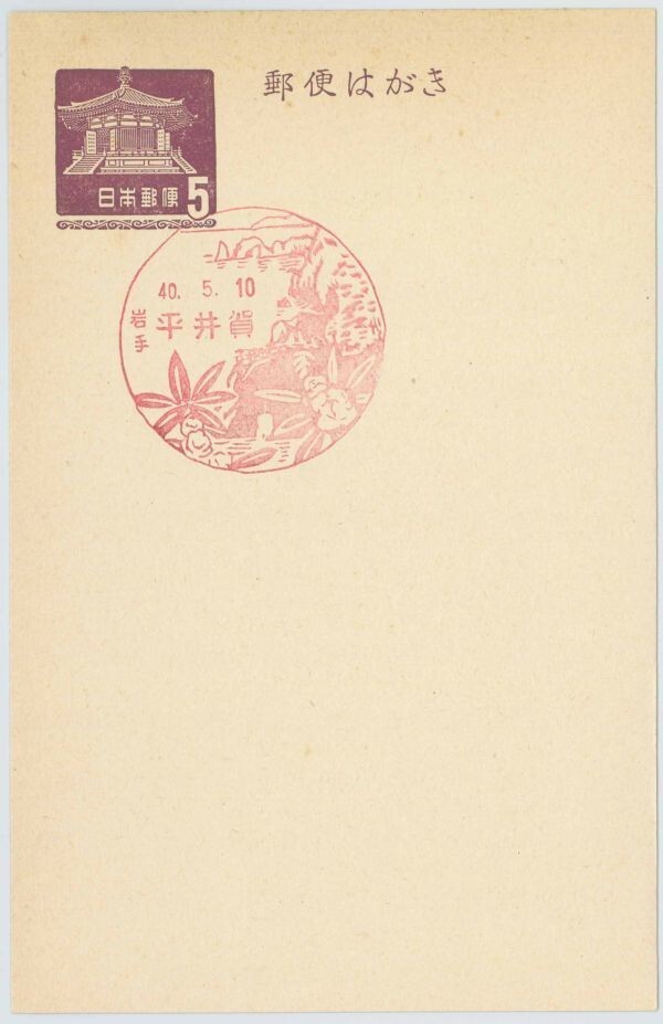 風景印☆平日・旧印☆岩手・平井賀・S40.5.10