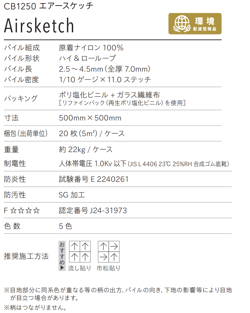 川島織物セルコン 業務用 タイルカーペット カラーバンク エアースケッチ CB1250 全厚7mm 寸法50×50cm 20枚入り/ケース