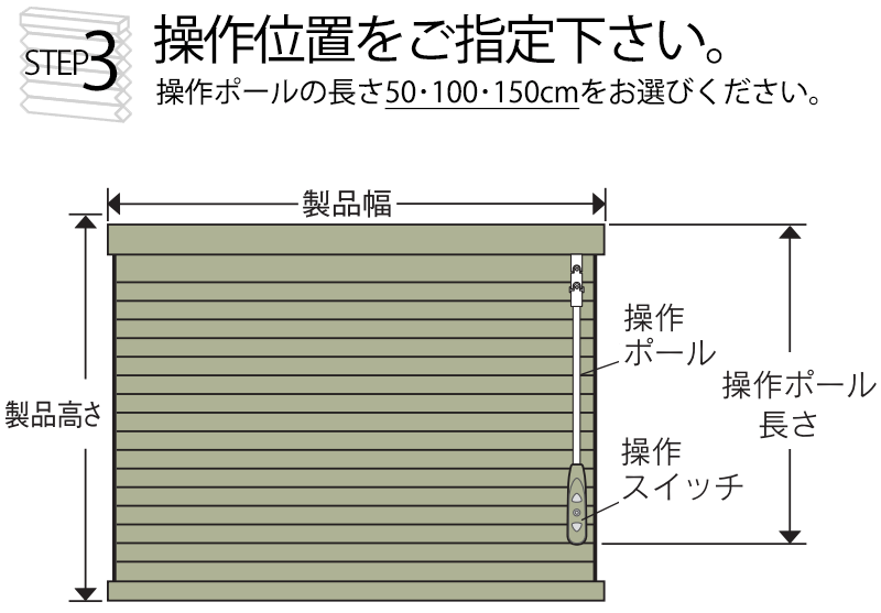 操作ポール(50・100・150cm)にスイッチがあり簡単昇降します。