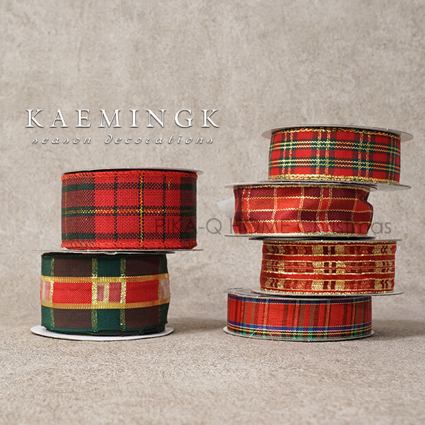 クリスマスツリー 飾り オーナメント KAEMINGK タータンチェック リボン レッド×ゴールドシアーチェック 2.5cm×2m[130069-4]