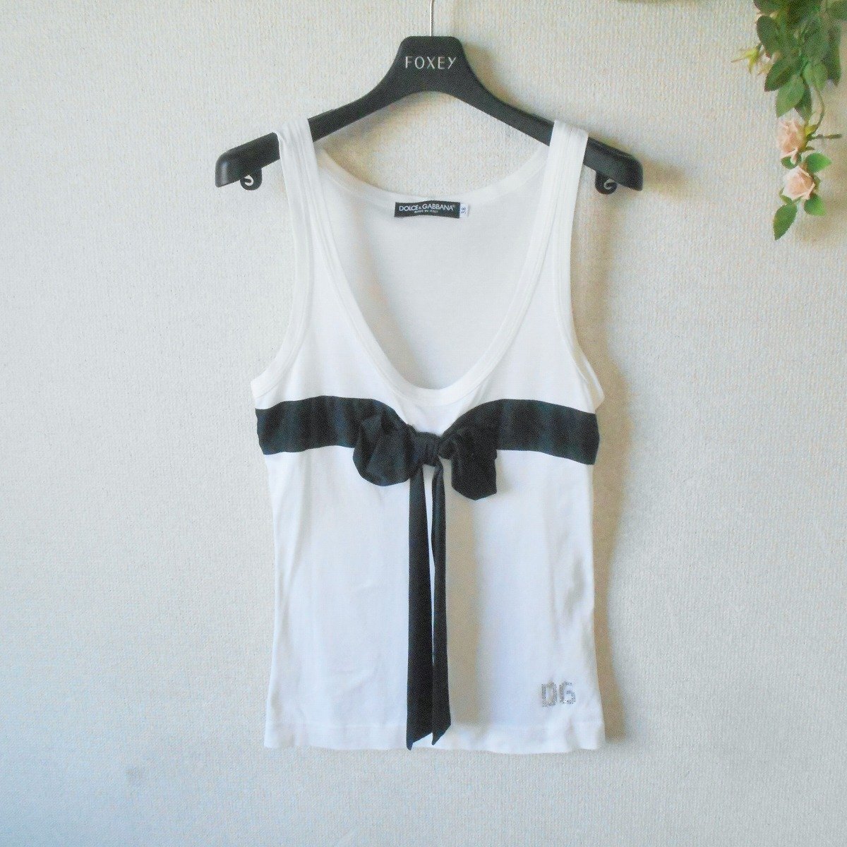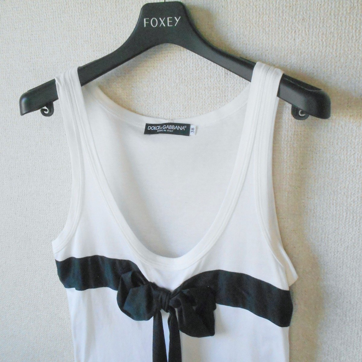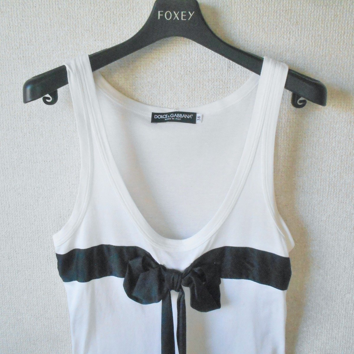 【ポイント】ドルチェ&ガッバーナのレディース用タンクトップになります。お色は白系ベースで夏を中心に着ていただけるお品です。胸にはリボンが付いた、とっても素敵なデザインです。