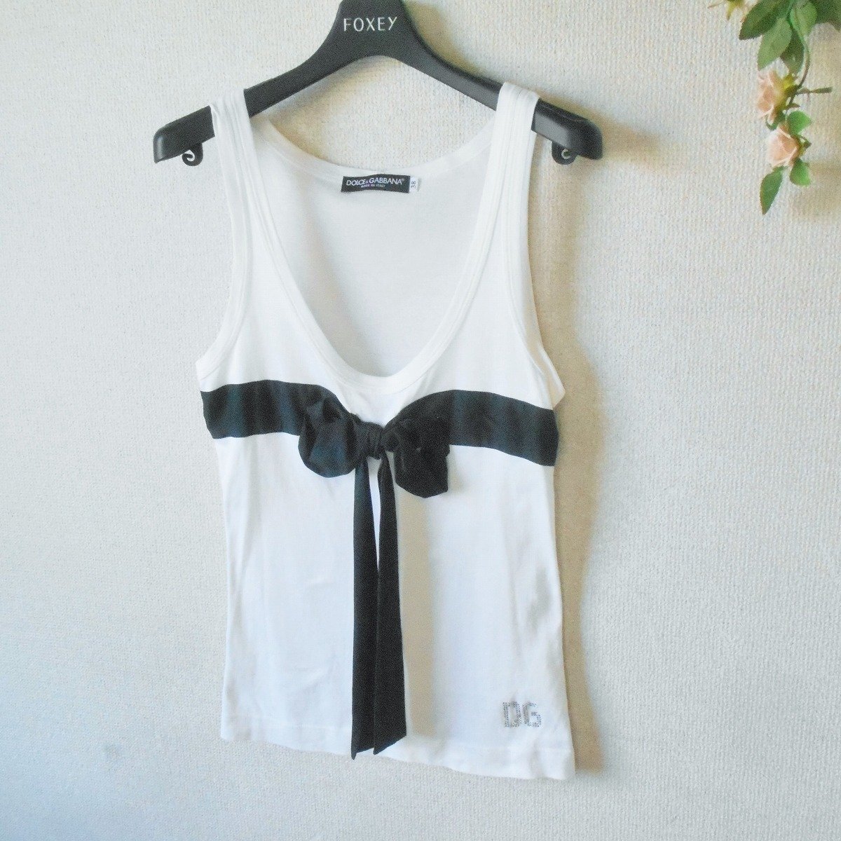 DOLCE&GABBANA ドルチェアンドガッバーナ タンクトップ 38 絹 シルク ブレンド レディース 夏 リボン ラインストーン
