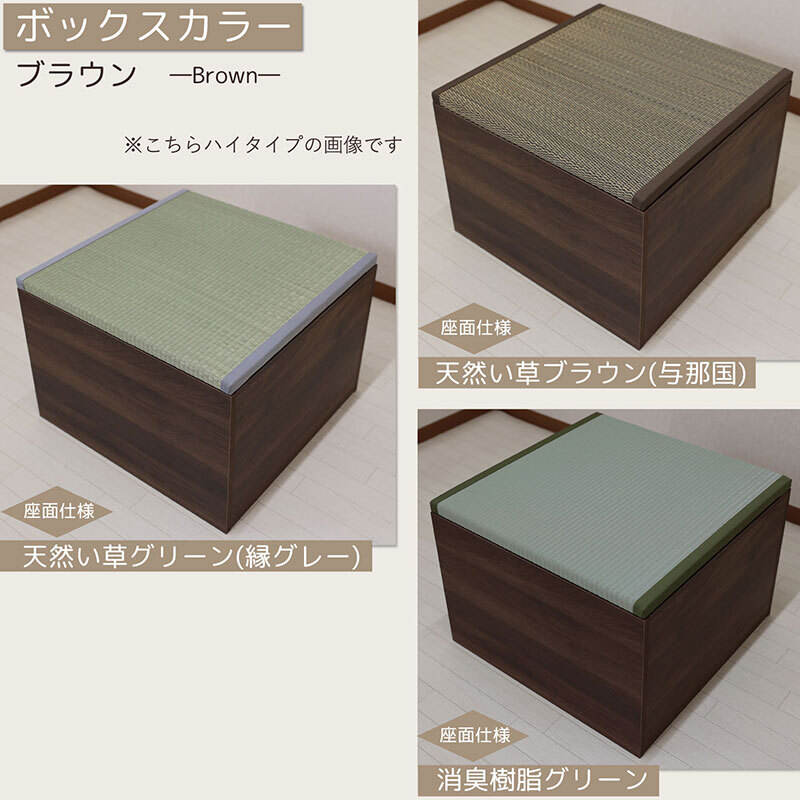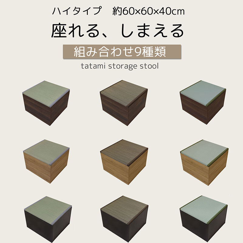 | ※重要※ 【送料について】 ※北海道・沖縄・離島の場合は、別途送料がかかります。ご注文後、折り返し送料を含めた金額を連絡をさせていただきます。 【在庫状況や返品などについて】 メーカー直送品のためメーカーに在庫がなくなり次第、販売終了やお待ちいただく事があります。購入前に当店に在庫確認をしていただくと、確実な状況をお知らせします。い草ラグ・竹ラグなどは、天然素材の為色ムラや不揃いなどがあります。このような性質上に関する返品はお受けできませんのでご了承ください。 【商品について】 ![]() ![]() ![]() ![]() ![]() ![]() ![]() 【商品詳細】 --商品名-- 畳収納ボックス ハイタイプ 樹脂製 --サイズ-- 60x60x42BR --組性-- 表地:い草、PP 中身:合成樹脂化粧パーティクルボード(メラミン) 裏地:MDF(中質繊維板) --備考(付属品)-- お客様組み立て、梱包数:1(2梱包を1つにしてお届け)、本体中国/上蓋日本製 メラミン化粧板 アレル物質吸着シート 防カビ加工済 抗菌防臭機能 耐荷重:約120kg 置くだけ!憧れの小上がり、畳スペースが完成! 座れる収納ボックス。 お子様のおもちゃや災害時の備品用品の収納にもぴったり! 選べる素材とカラーで機能美と和モダンを兼ね備えたお部屋に!! ■生産国:座面/日本 天板の板と、外装のダンボールは中国製ですが、上蓋の加工は一枚一枚九州で作成しております。 本体/中国製(企画・デザインは日本製) 在庫状況や返品などについて メーカー直送品のため、メーカーに在庫がなくなり次第、販売終了やお待ちいただく事があります。購入前に、当店に在庫確認をしていただくと、確実な状況をお知らせします。い草ラグ・竹ラグなどは、天然素材の為、色ムラや不揃いなどがあります。このような性質上に関する返品はお受けできませんのでご了承ください。 送料について ※北海道・沖縄・離島の場合は、別途送料がかかりますので、お問い合わせくださいませ。 ページ内検索生地品番一覧:畳収納ボックス ハイタイプ 樹脂製 60x60x42 BR |