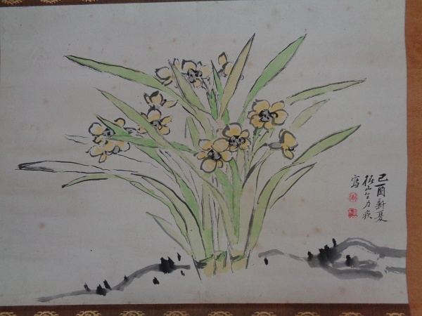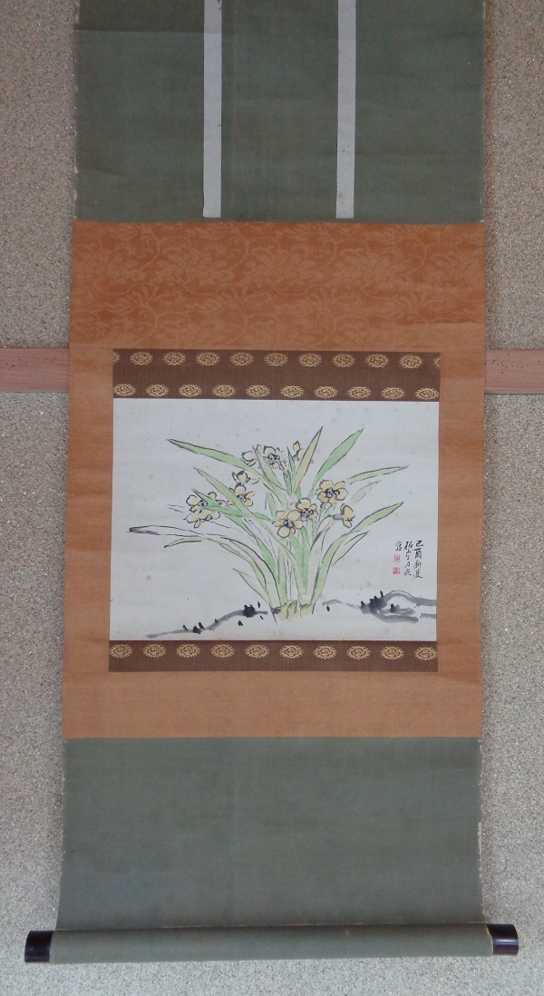【真作保証】椿椿山  水仙  紙本  晩年作