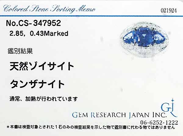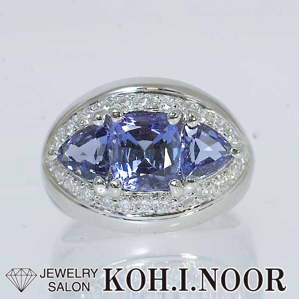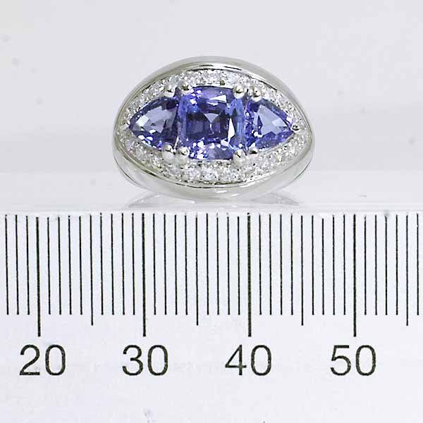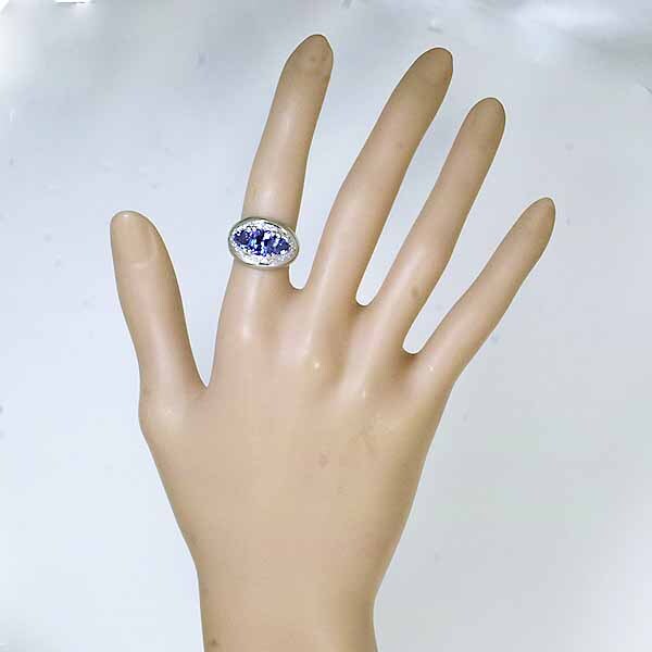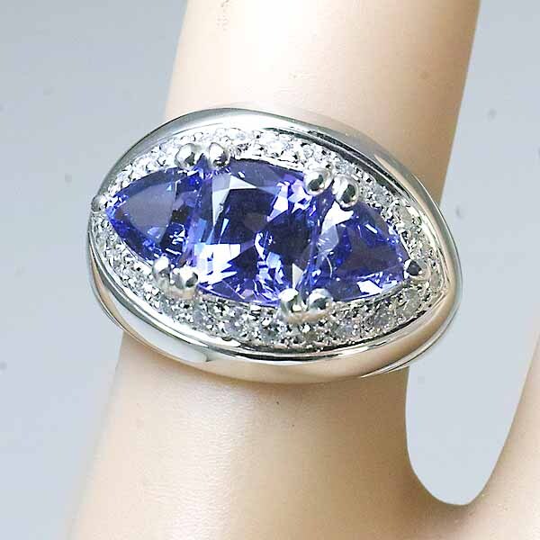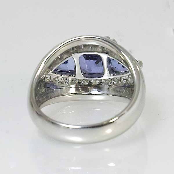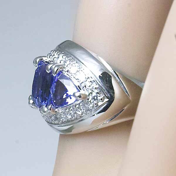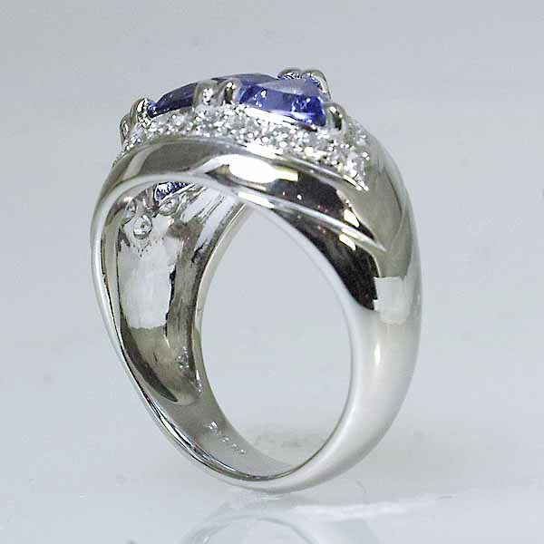 タンザナイトをメインにしたプラチナ製のファッションリング。