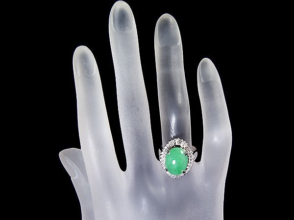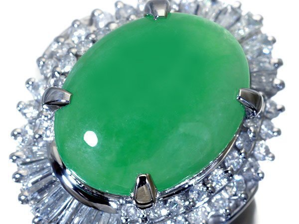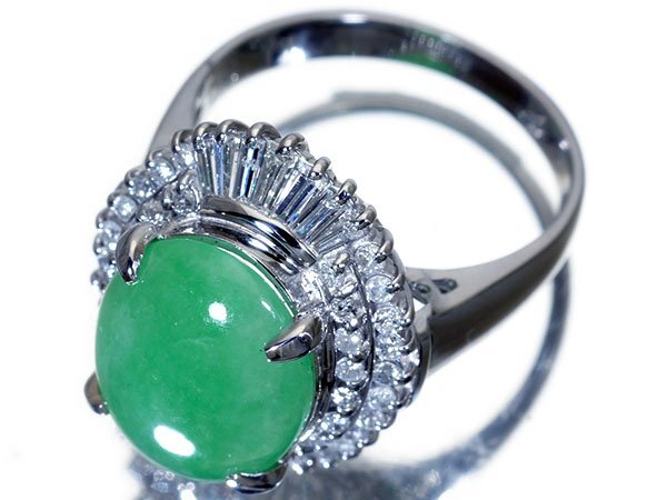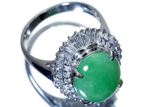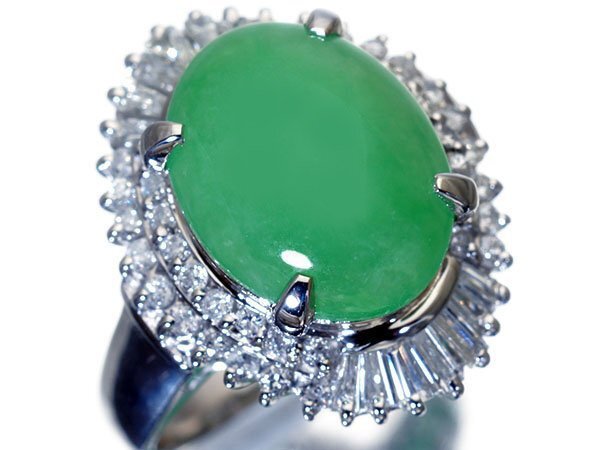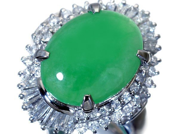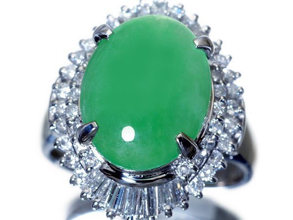 樹脂含侵無し保証!超希少な大粒良質天然翡翠4.70ct&良質ダイヤモンド総計0.65ctを素敵に宝飾した、高級Pt900リングを激安価格で特別大放出致します!