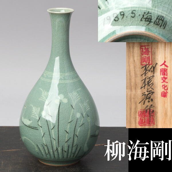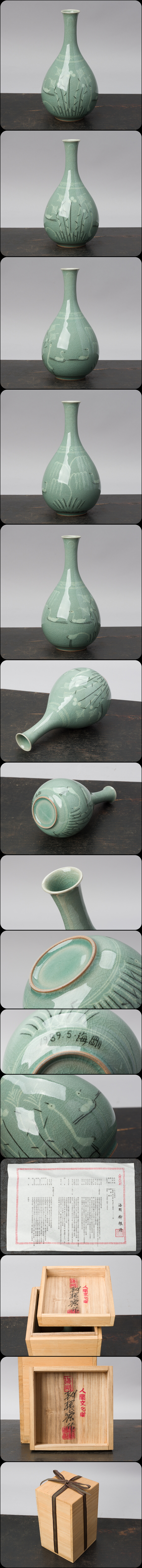 | 柳海剛の高麗青磁花入。共箱あり。真作保証。 サイズは、幅約9.5cm、高さ約18cm。 傷・直しございません。 状態・詳細は、画像でご確認お願いいたします。 |