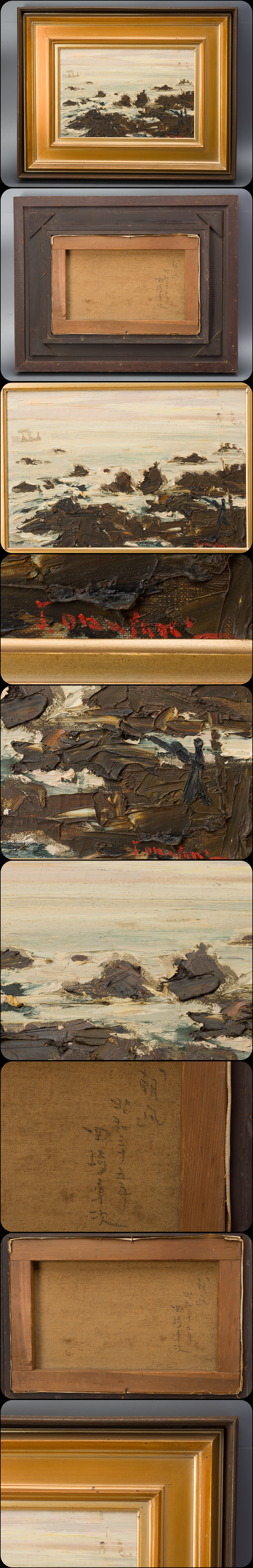 | 岡崎勇次、「朝凪」。カンバスに油彩、カンバスサイズはP6号。 真作保証します。 額のサイズは、約63㎝×約50㎝です。 額はガラスやアクリルは入っていません。 釘は外さず撮影しています。 絵にヒビ見られます。 状態・詳細は画像でご確認ください。 |