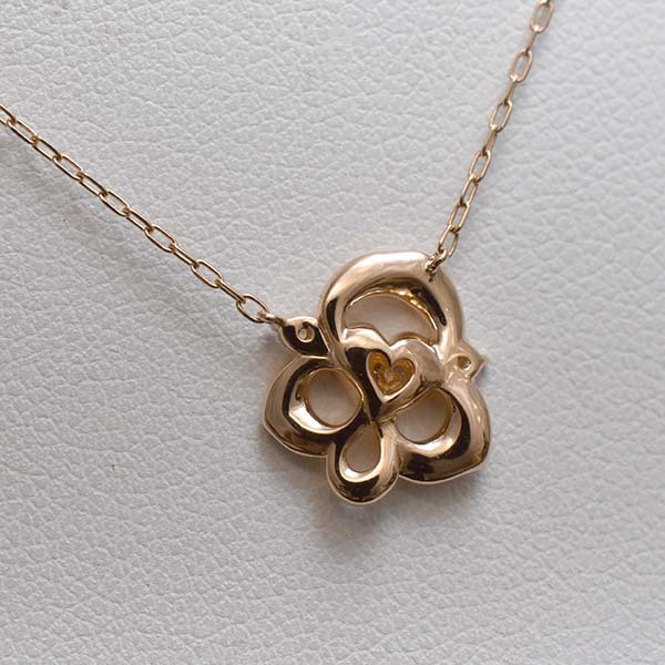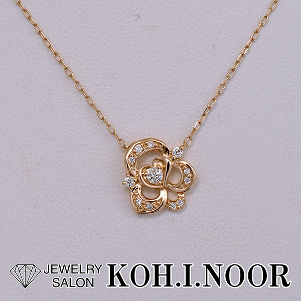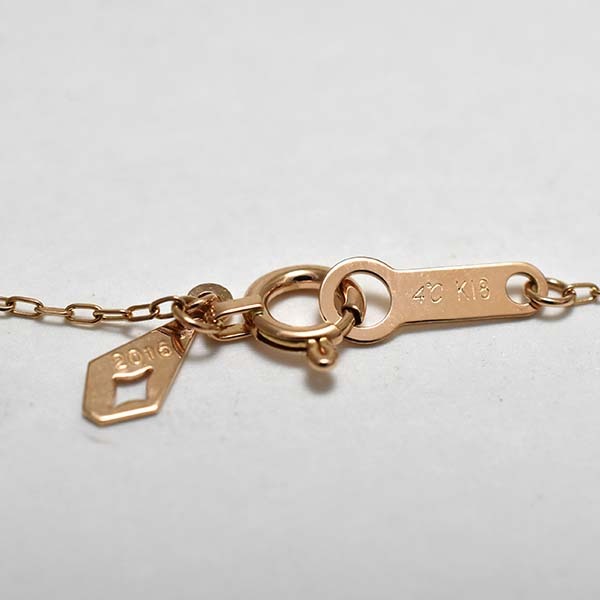 ローズモチーフにダイヤをセットした4℃の18金ピンクゴールド製プチネックレス。