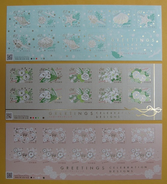 ●【記念切手】グリーティング・ハッピーグリーティング《63円・84円・94円》3種 (シール式) 2020年 5月 未使用