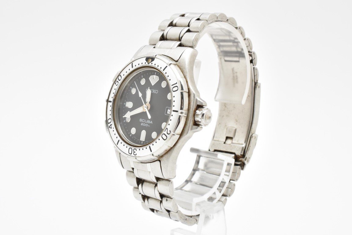 SEIKO セイコー 腕時計 スキューバ時計 メンズ クォーツ式 シルバー ブラック文字盤 3針 デイト 7N35-6000