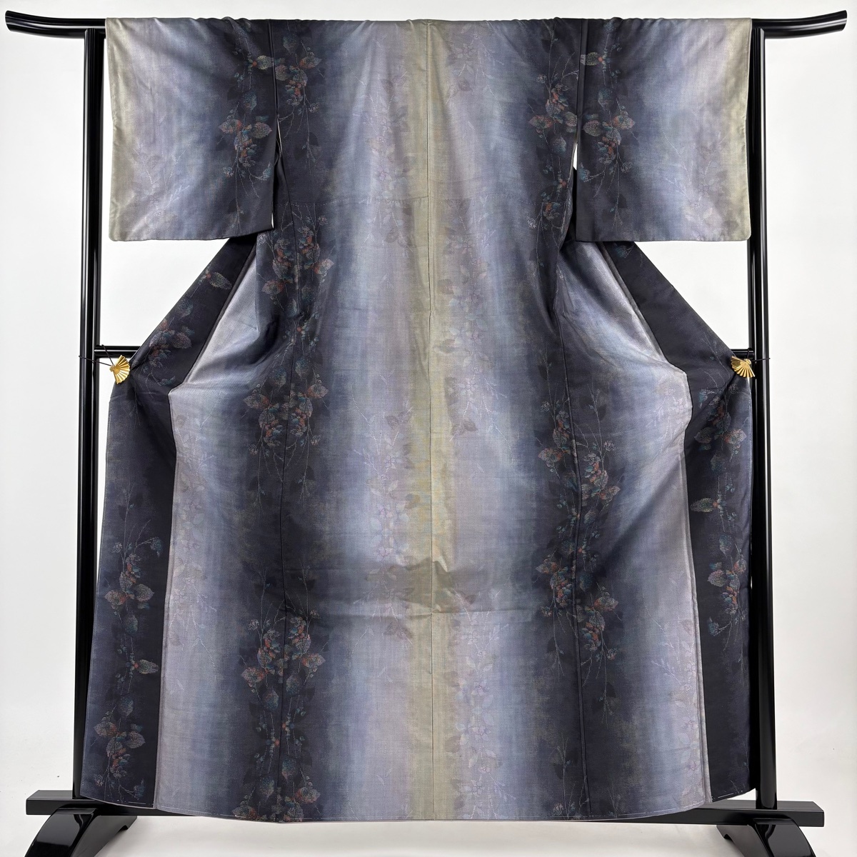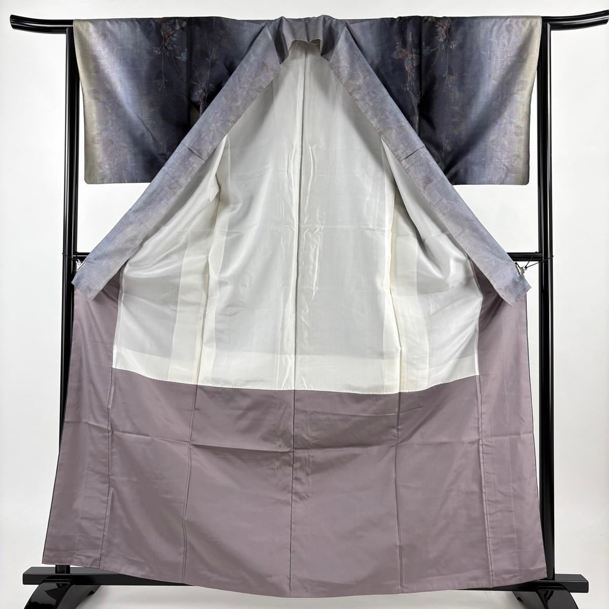 | 紬 美品 秀品 草花 薄紫 袷 身丈162.5 裄丈63.5 S 正絹 【中古】 |