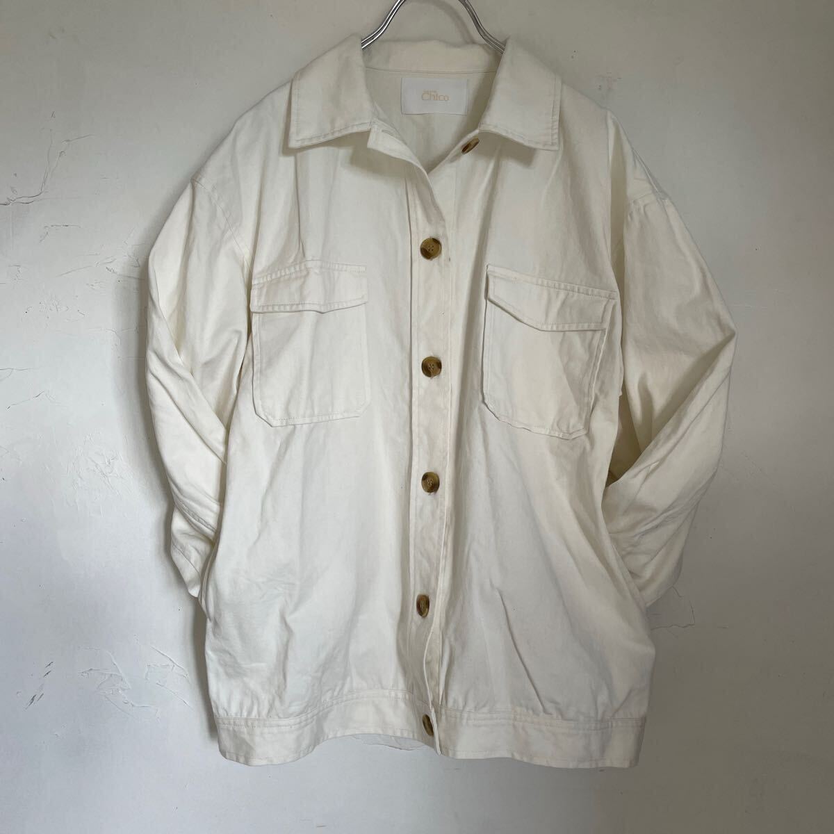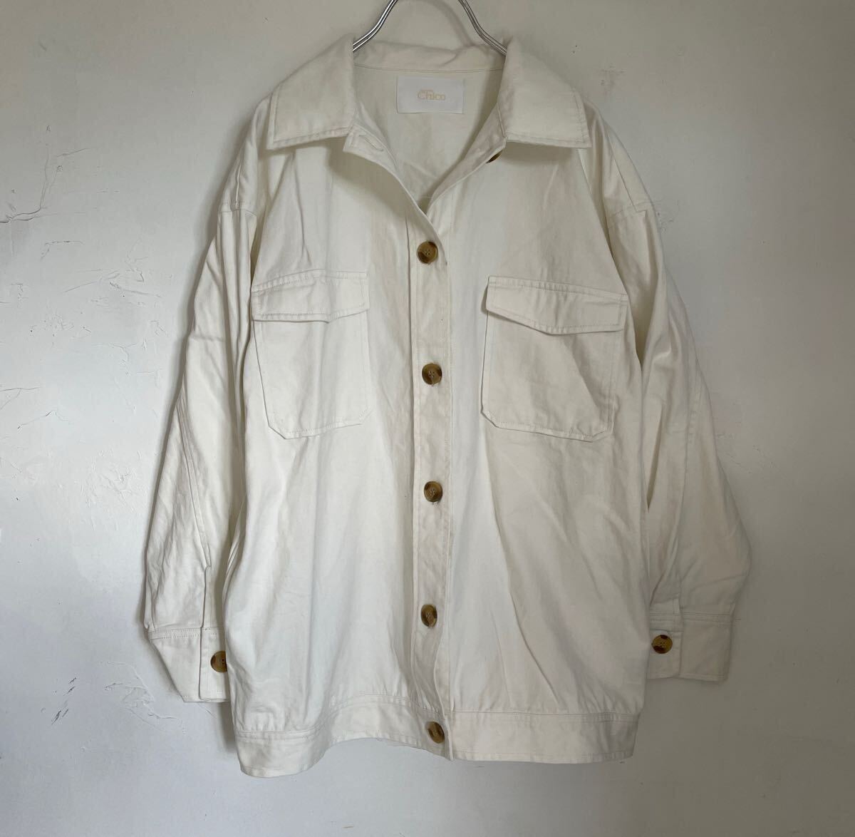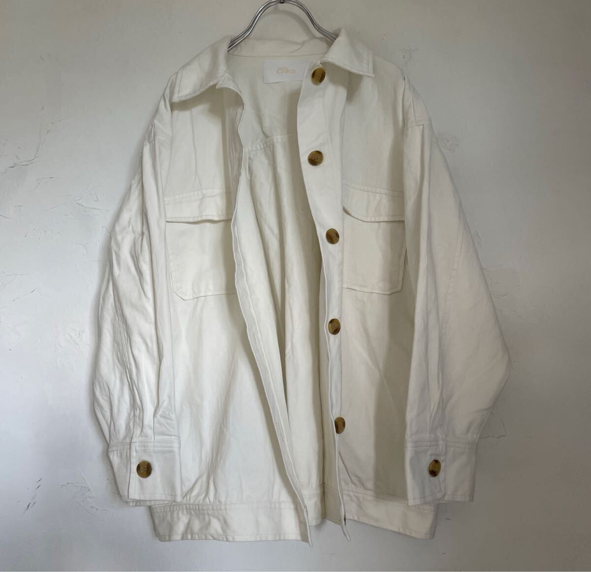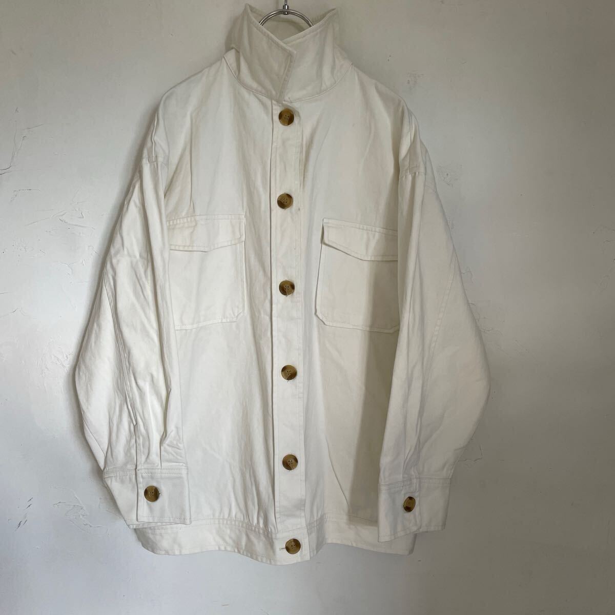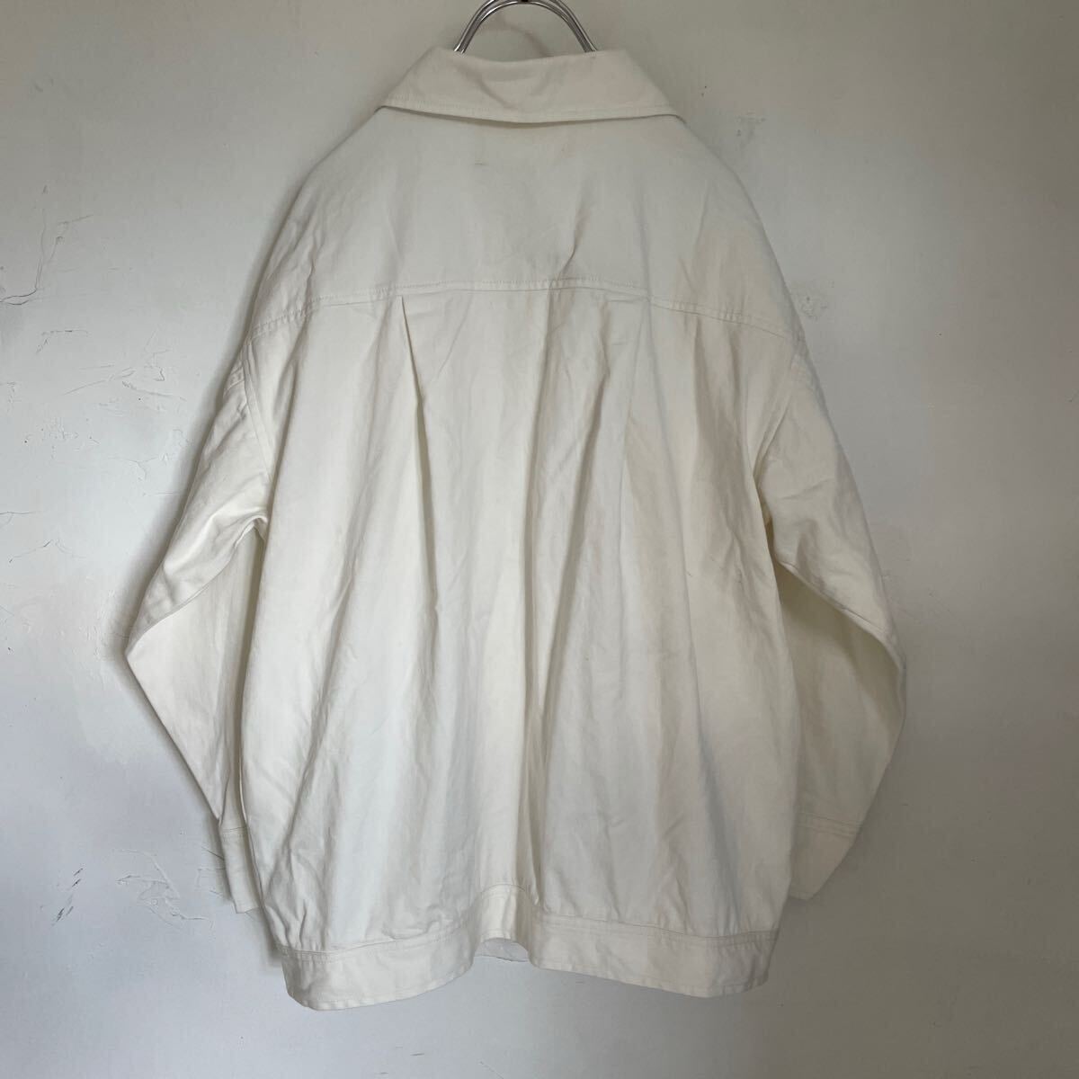コットン100% ワークジャケット ホワイト デニムジャケットになります。白色。バックタック レディースのFサイズ になります。男女問わずざっくりと着て頂けるかと思います。