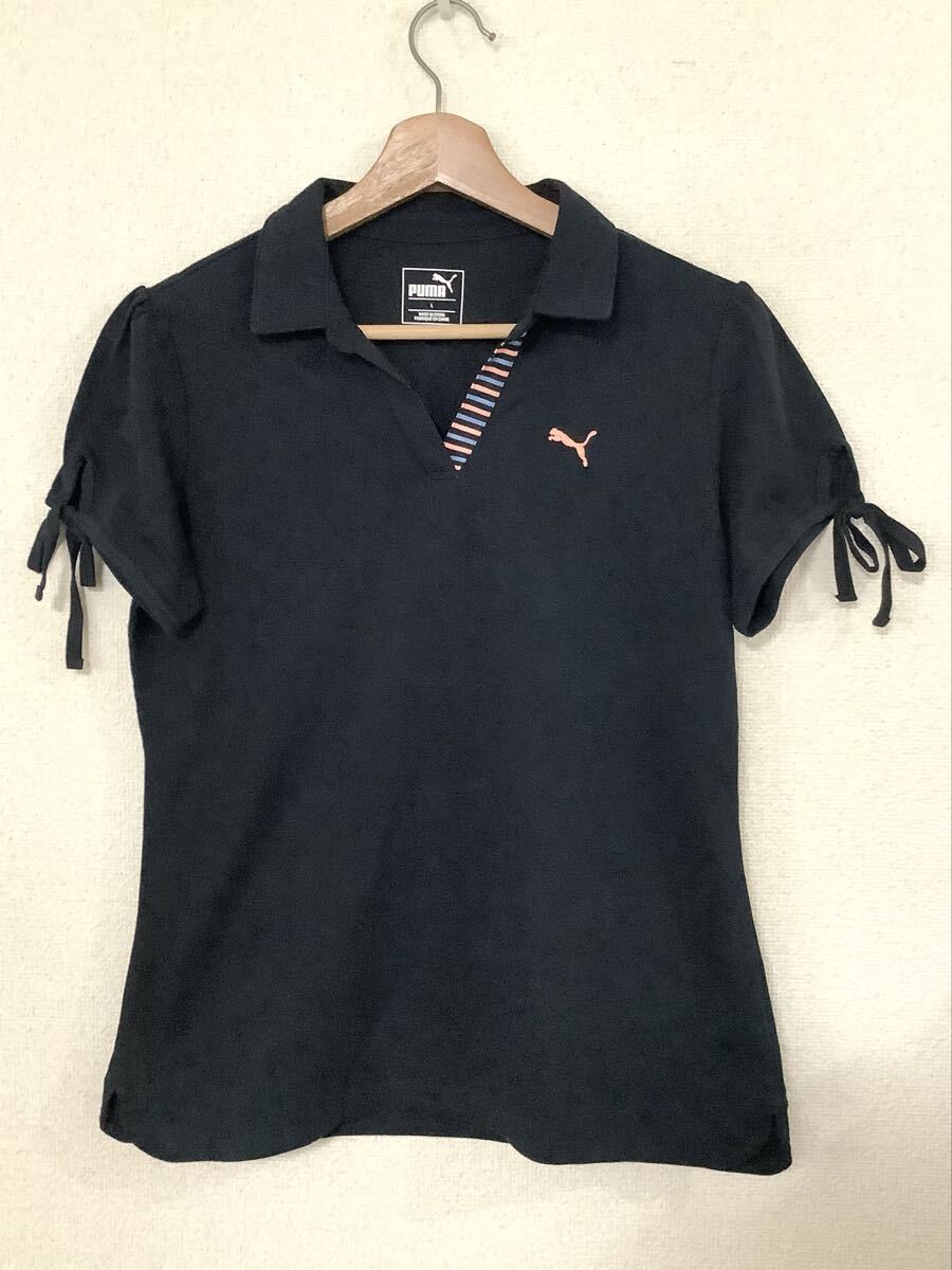 PUMA プーマ 半袖ポロシャツ ブラック スポーツウェア トレーニングウェア カジュアル レディース 古着 L ゴルフウェア