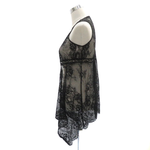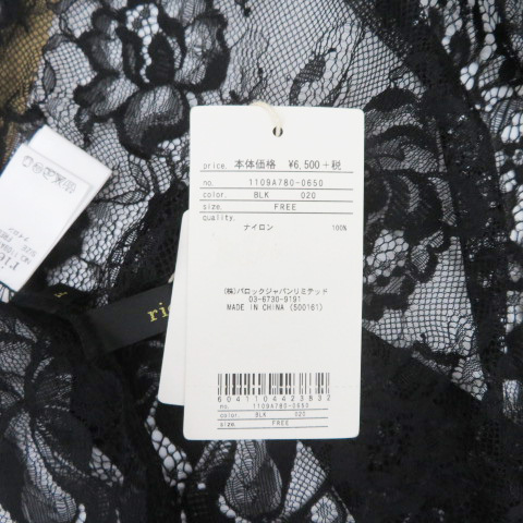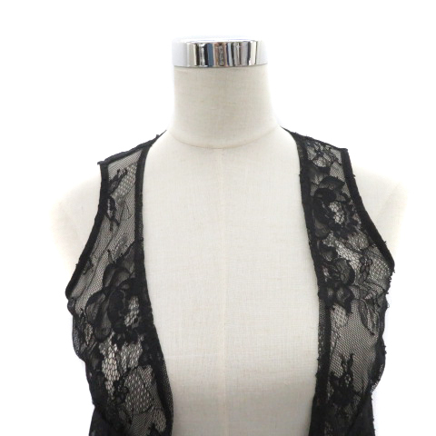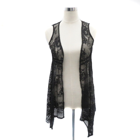 未使用品 リエンダ rienda ベスト ジレ ミドル丈 前開き レース F 黒 ブラック /YK30 レディース