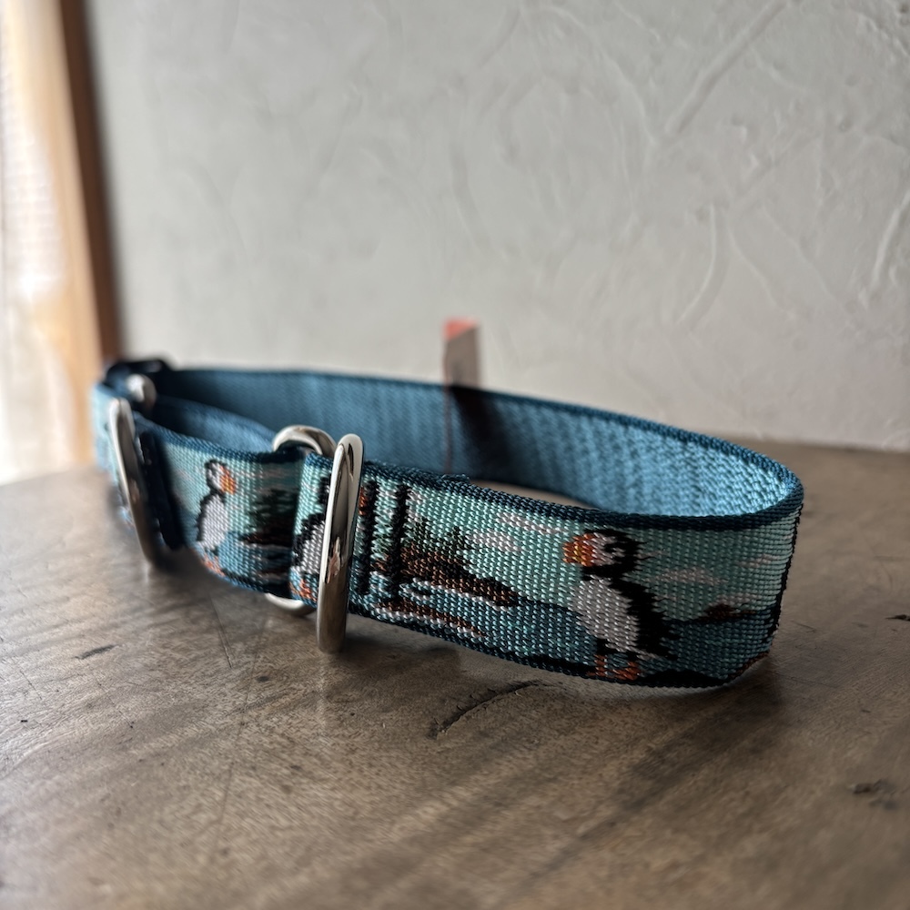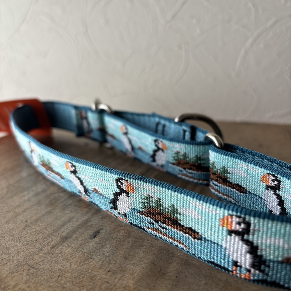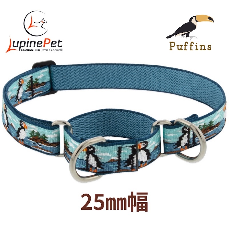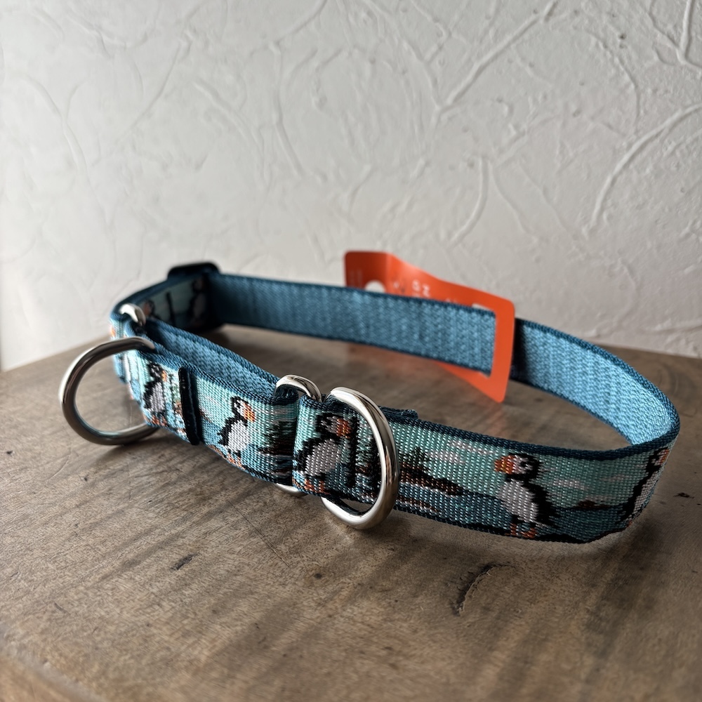 引っ張り防止や訓練の合図を送るのに役立つトレーニング用のハーフチョークカラー、マーチンゲールです。