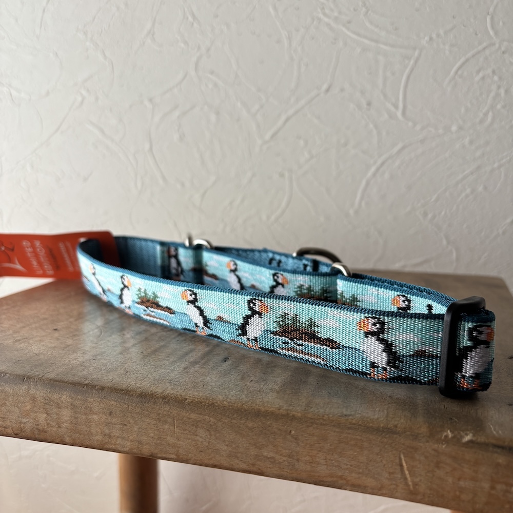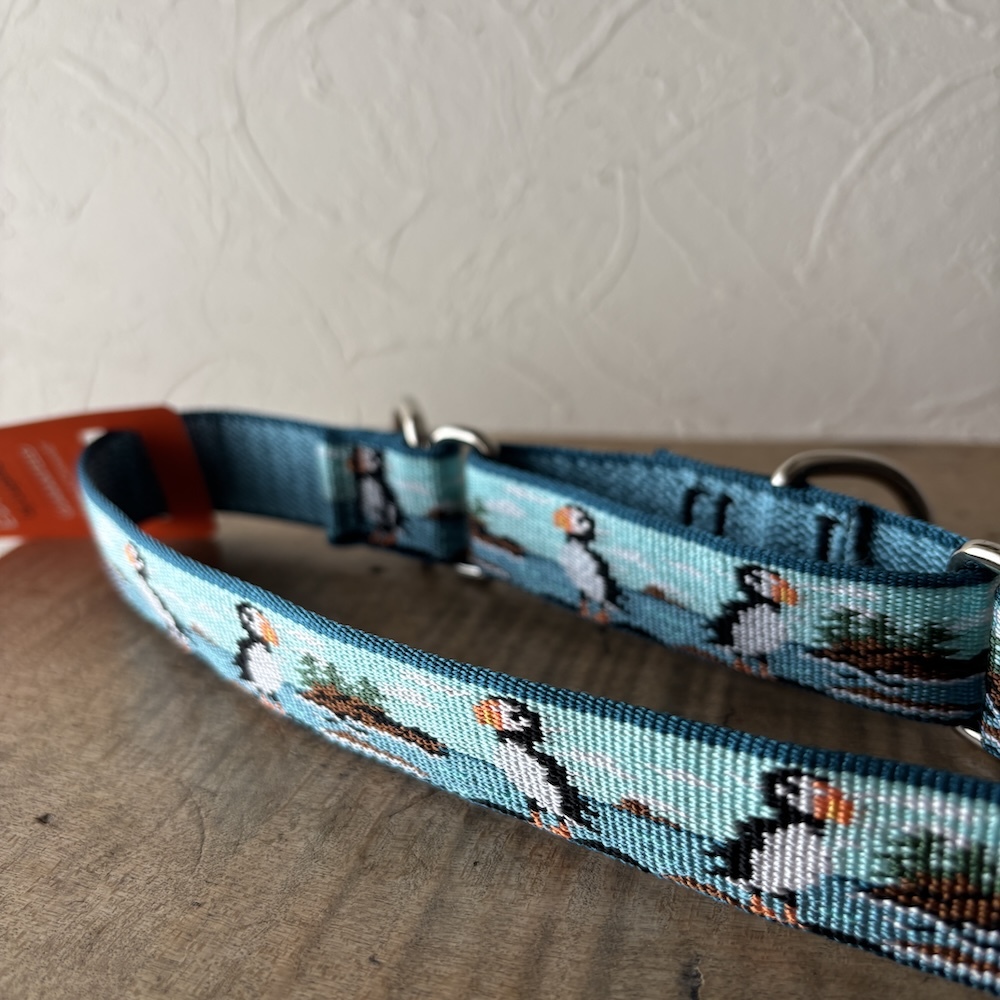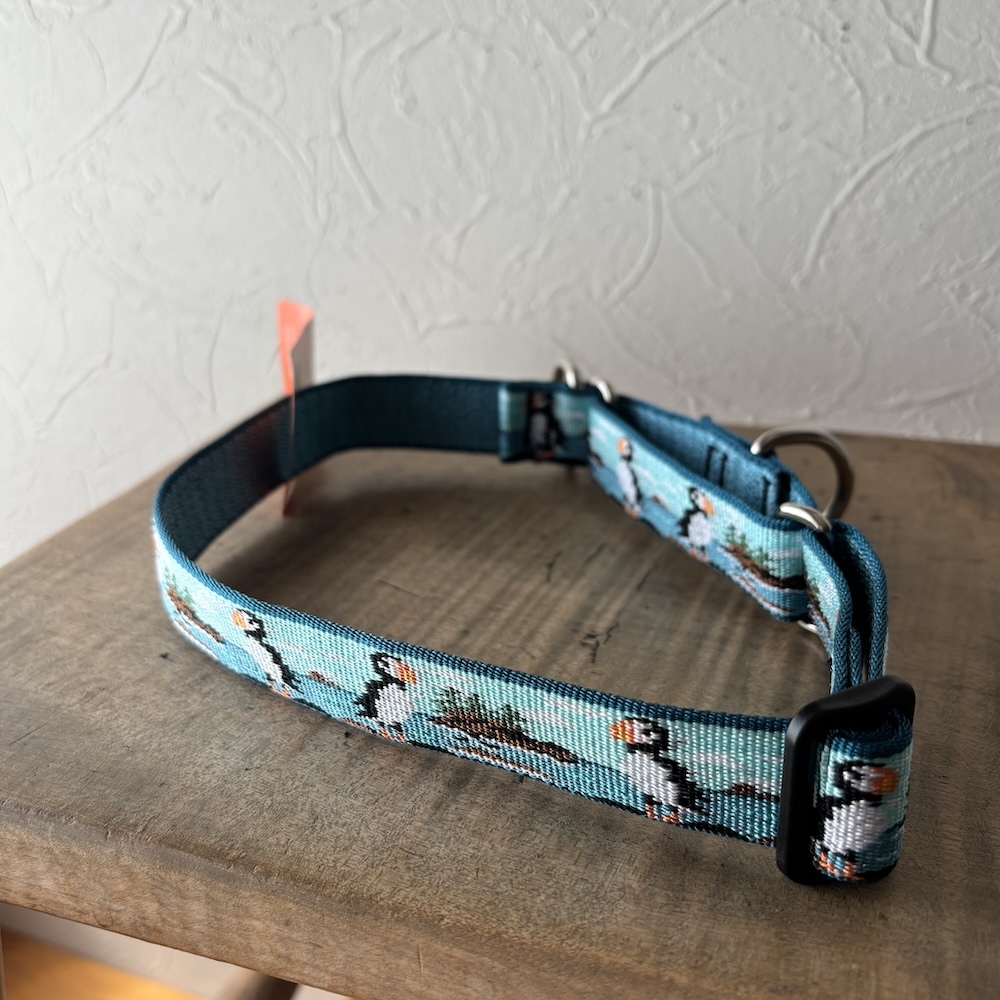 引っ張り防止や訓練の合図を送るのに役立つトレーニング用のハーフチョークカラー、マーチンゲールです。