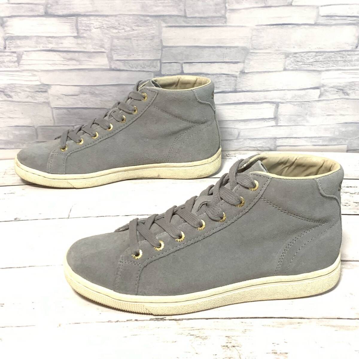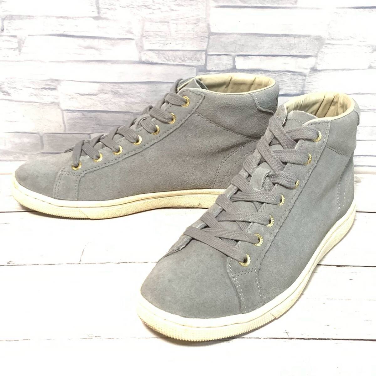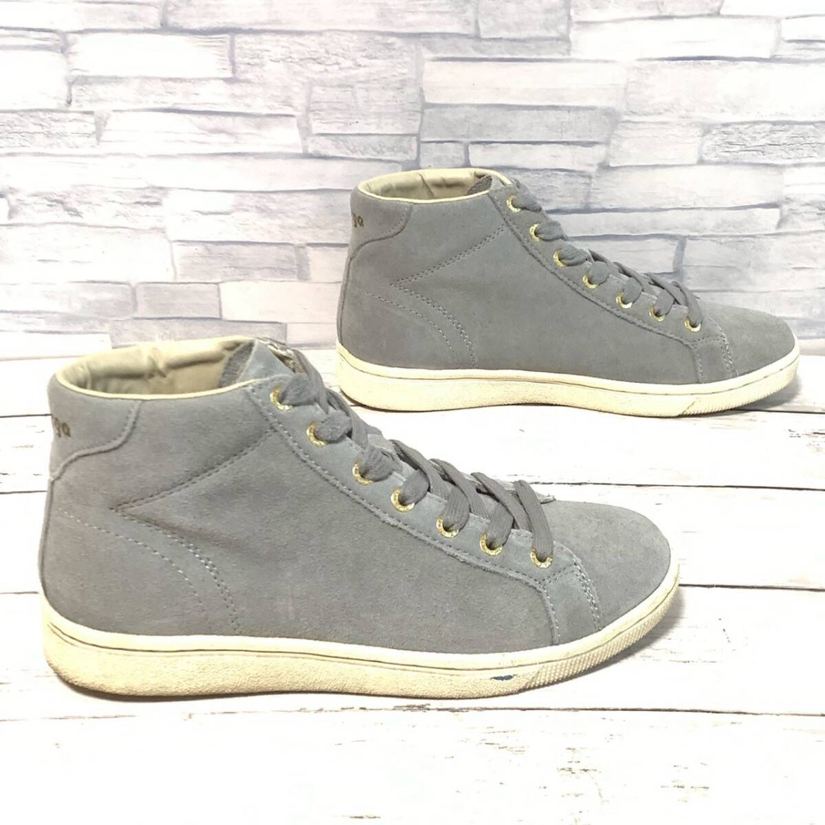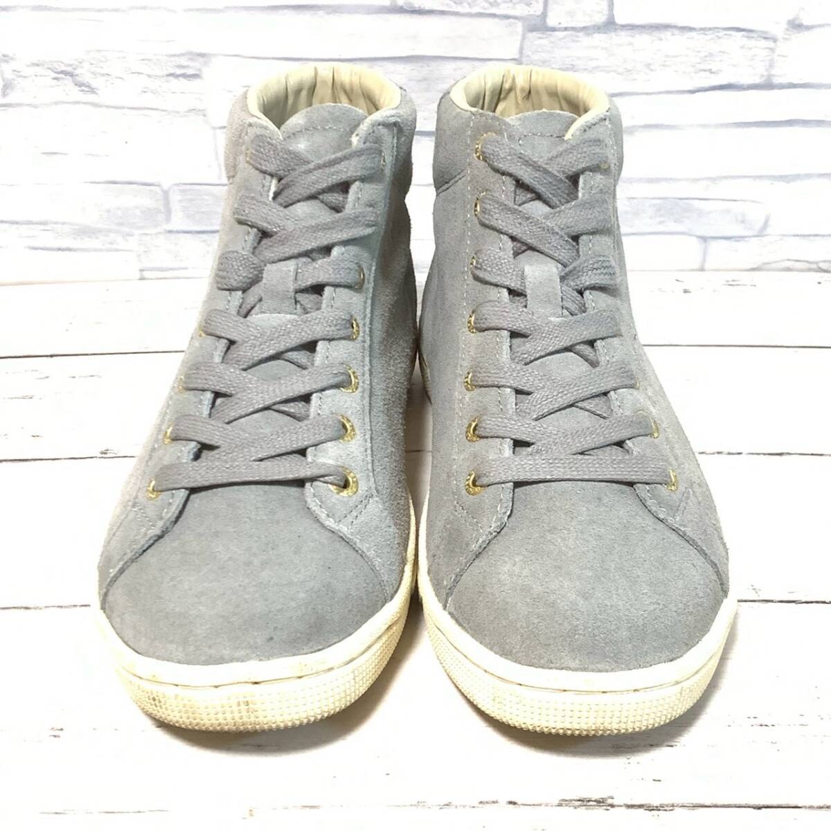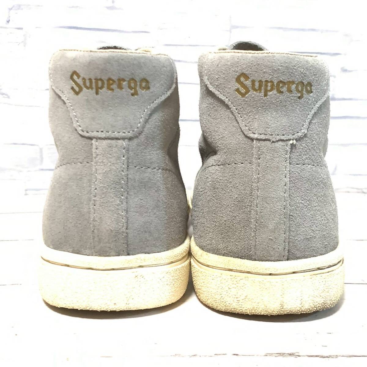 R9287bA 高級◎本革 SUPERGA(スペルガ)USA6(24cm位)ハイカットスニーカー レザーシューズ グレー メンズ レディース ユニセックス
