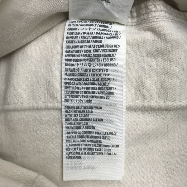 ◆SIZE:34 ◆ウエスト(腰部の幅×2)-約 92cm ◆股上(股の縫合部分から腰上まで)-約 39cm ◆股下(股の縫合部分から裾まで)-約 21cm ※採寸の多少の誤差はご了承ください |