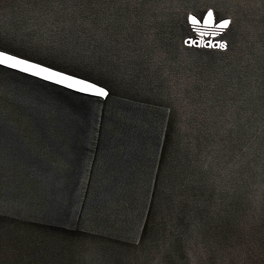 [商品管理番号] T5086 [ブランド] adidas/アディダス [サイズ] M [実寸サイズ] 着丈:約65cm 身幅:約51cm 裄丈:約83cm 袖下丈:約52cm [主な素材] 表地 : コットン [色] ブラック [仕様] スポーツ [状態] 特記事項:色褪せ、リブ劣化 | |||