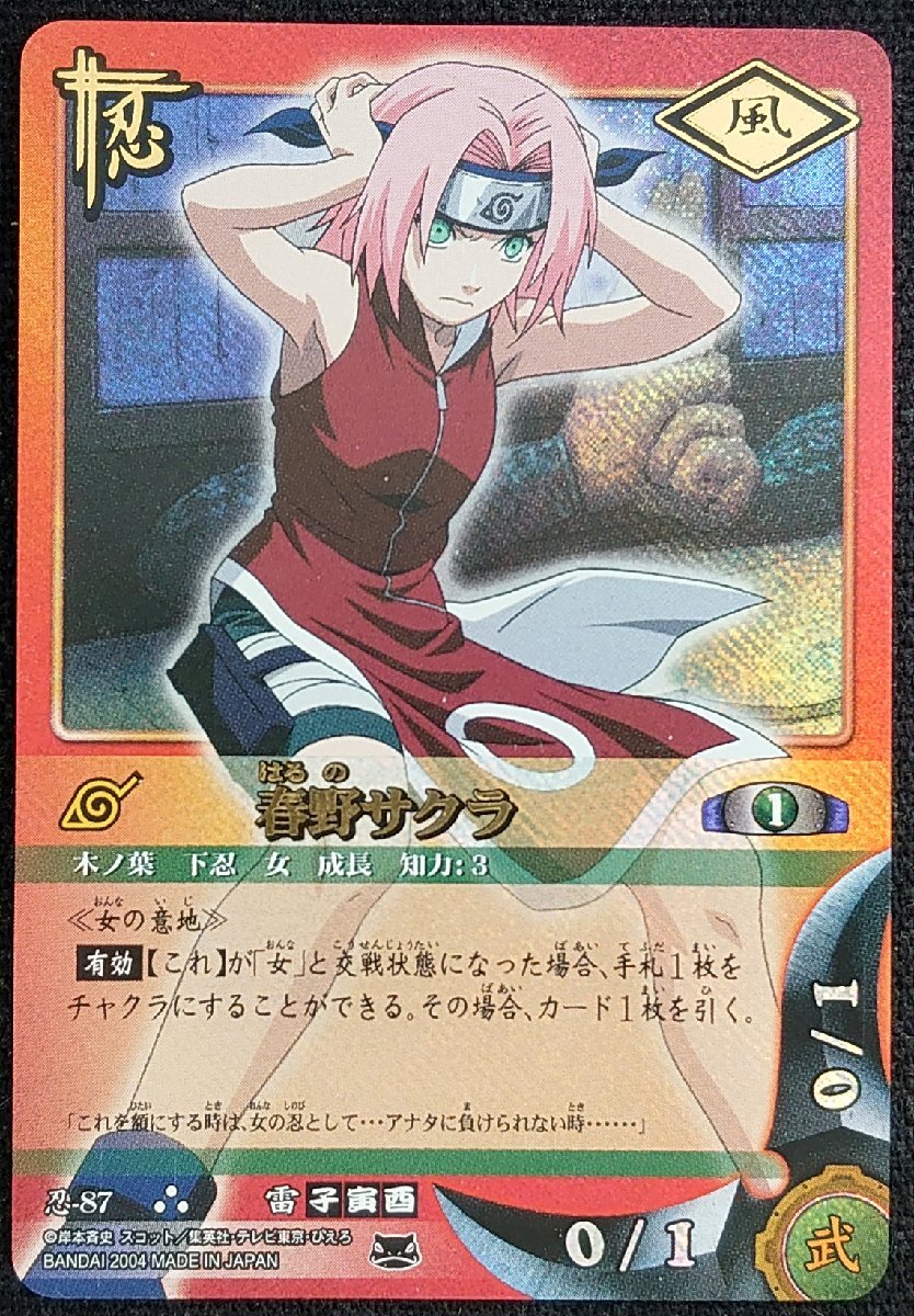 ●状態・仕様● | 画像は出品現物ですが品質に関しては コメントと共に判断して頂きますようご注意下さい。 【表 面】 美品です。 【裏 面】 小さな点凹が一ヶ所あります。 【四 隅】 美品です。 【周 囲】 美品です。 【光り方】 ノーマル仕様 【レア度】 ∴レア 【番 号】 忍-87 品質の優劣に関しては中古出品であると共に、 個人差があります事をご承知いただいた上でご参照下さい。尚場合によっては、 スキャナー又はスリーブ等の傷が映り込む場合もあります事をご容赦下さい。 |