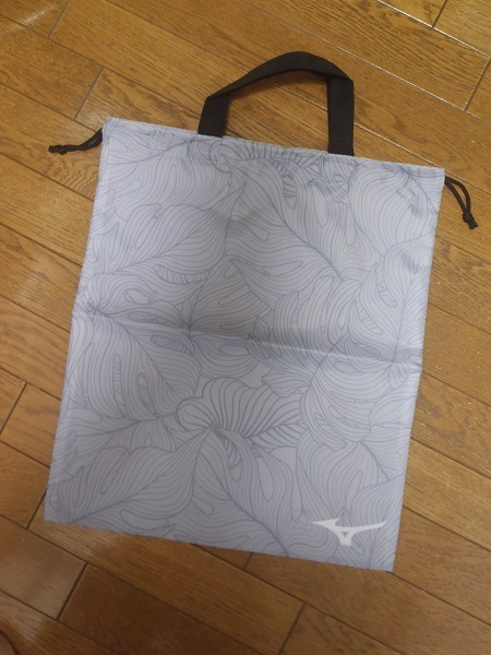 上部分に紐が通っていて、巾着のように絞れます。大きめでたっぷり入ります。