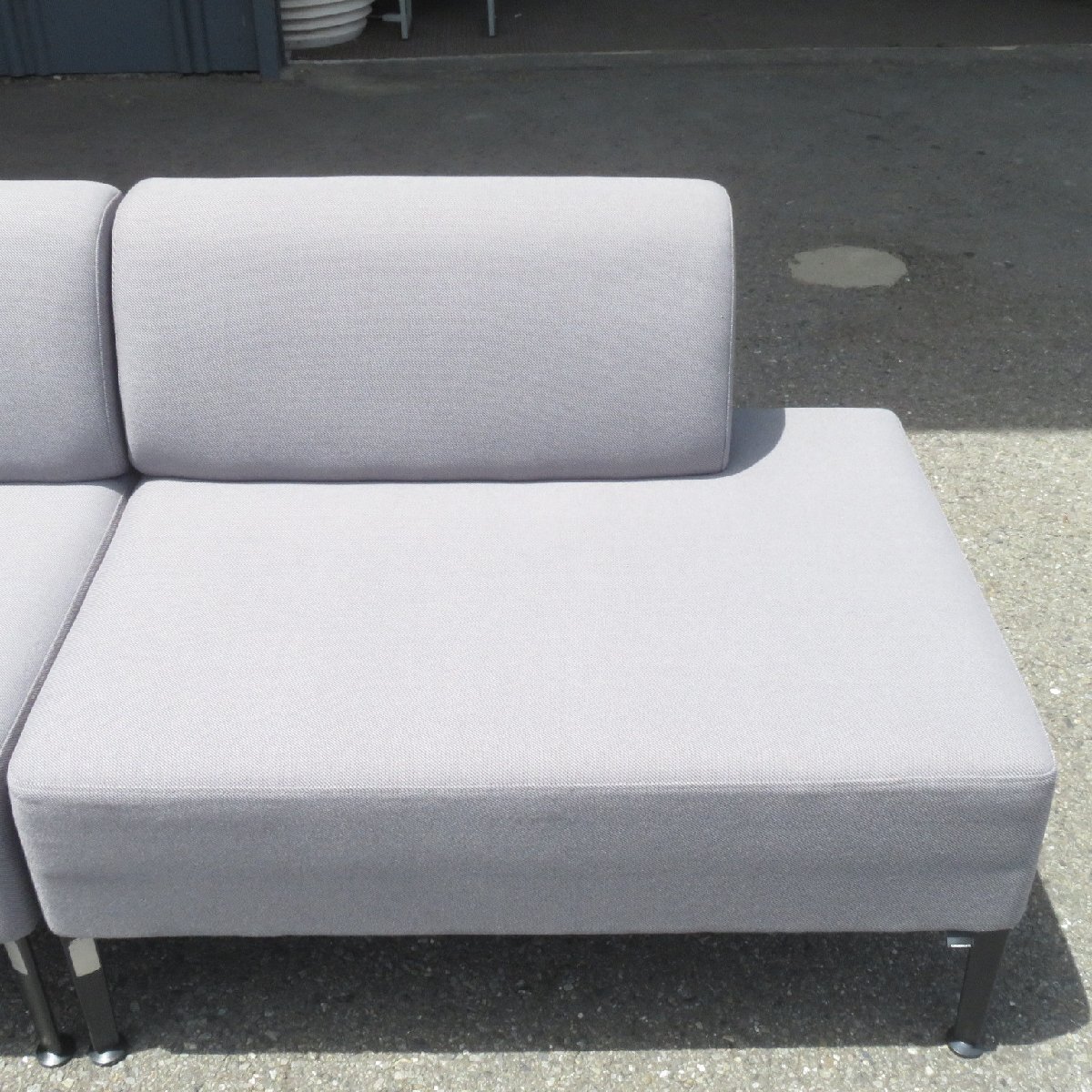 オカムラのソファセットが入荷致しました。お色味はライトグレーです。 計7個、組み合わせが自在なソファセットです。 シンプルで清潔感のあるデザインなので、他のインテリアとも合わせやすいのが魅力です。 程よく弾力のあるクッションが快適な座り心地で、リラックスタイムにはうってつけです。 脚が付いているタイプになりますので、お掃除も可能です。 オフィスラウンジや役員室などにぜひいかがでしょうか! |