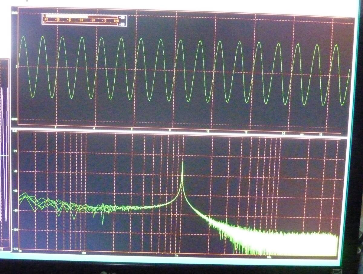 最後の写真は、校正信号をPC版のスペアナで表示したものです。(96Kサンプル)
