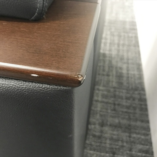 手に馴染む優しい木の質感が心地よい、座り心地も快適なソファです。どんなシーンにも合う落ち着いた色合いで、エントランスや休憩スペースにも最適です。