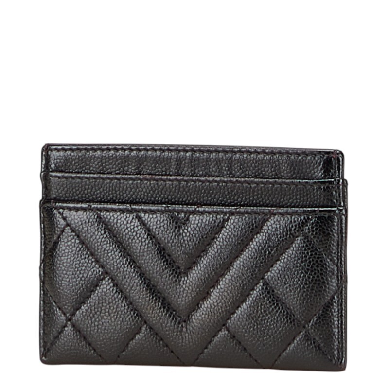 シャネル ココマーク カードケース ブラック キャビアスキン レディース CHANEL 【中古】