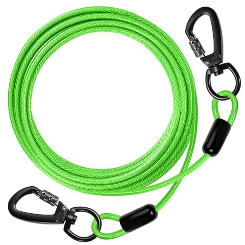 「DANOFY 犬 ワイヤー 係留 リード ケーブル - 犬用 係留ケーブル 5mm極細 カラビナ ロック付き 錆び付かない ランナーケーブル し」▼▼(商品説明)グリーン/4.5m/-・Color:グリーンSize:4.5m・??ロック付きのカラビナ伝統的なナスカンが使用された犬用 ワイヤーリードと違い、DANOFY係留リードは亜鉛合金製のカラビナを用い、カラビナのレバーにも安全ロック付きなので、ロングリードのハズレからしっかり守ります。また、子犬に対しては、ナスカンが常に重すぎ、亜鉛合金製のカラビナであれば、その悩みを解消します。犬 係留ロープは軽くて高強度であり、耐久性も優れています。ロック付きタイプなので、愛犬が逃れるご心配が不要になります。更に、犬 係留 ワイヤーは360°スムーズに回転できるので、愛犬が思う存分に動き回っても絡まないです。・??高い引張強度弊社製販されたこのワイヤーチェーン 犬は、高強度亜鉛メッキのスチールワイヤーロープにPVCビニールコーティングを施したヘビーデューティーなワイヤーロープ リードです。内外に異なる素材を使用した二重構造を採用することで、柔らかさを保ちながら丈夫さを向上し、係留ケーブル破断を防ぐ優れた強度と耐久性を備えています。工場で専門的な引張試験と品質テストにより、係留ワイヤーは