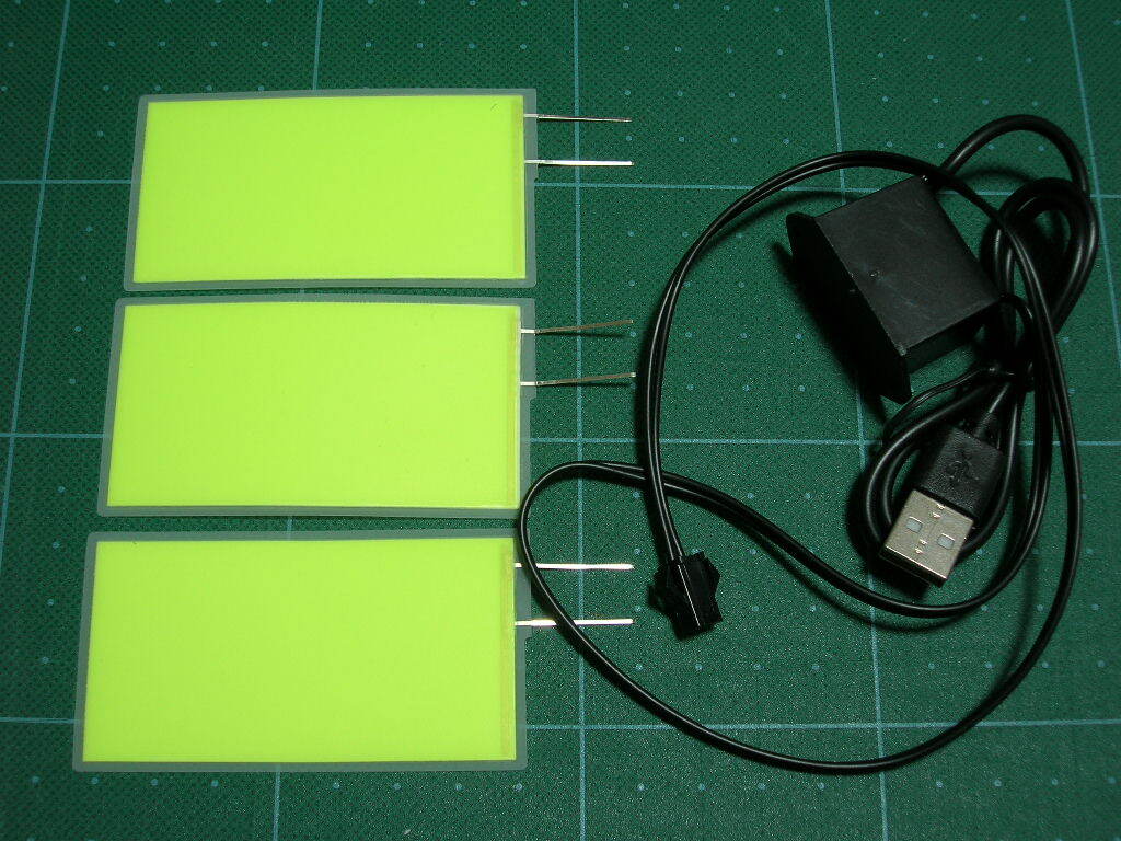 EL板 ELシート 3枚 インバータ セット実験用 エレクトロルミネッセンス 光る名札等に