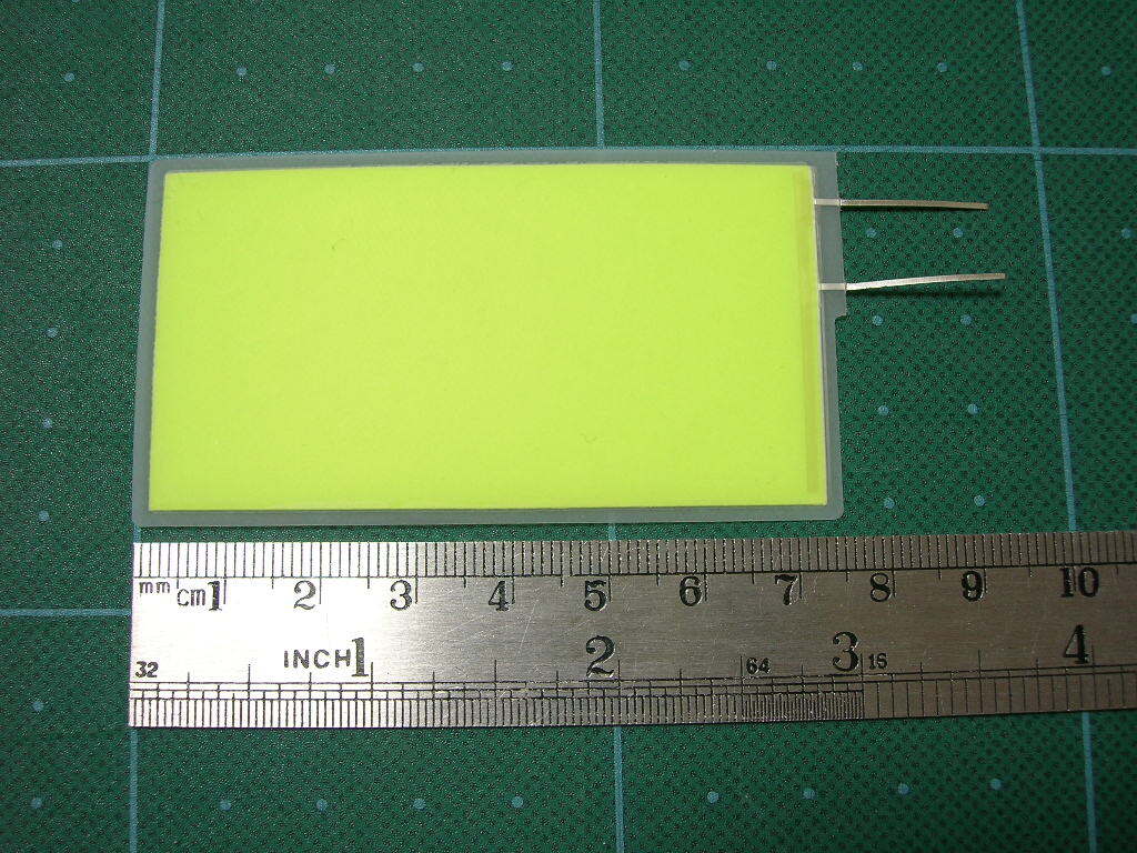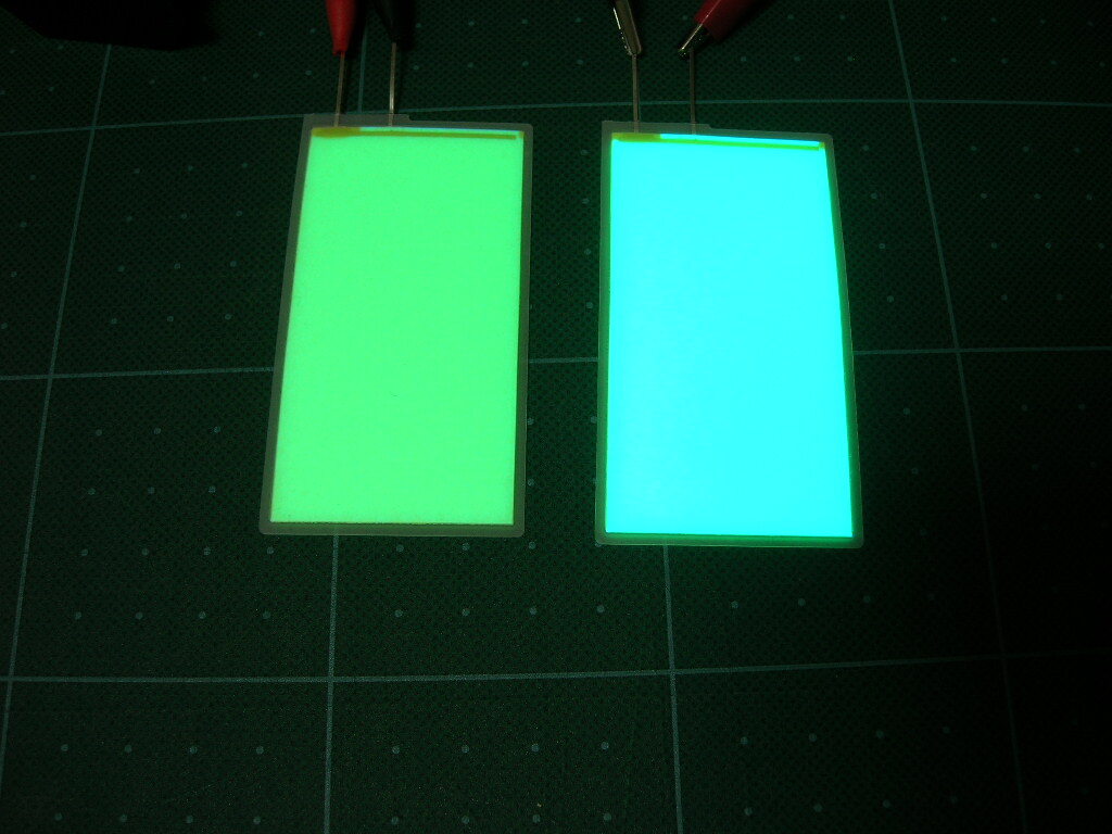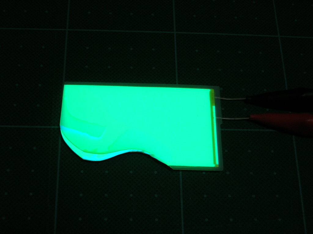 ELシートは、公称の発光色はエメラルドグリーンとなっています(未点灯時は黄色に見えます)