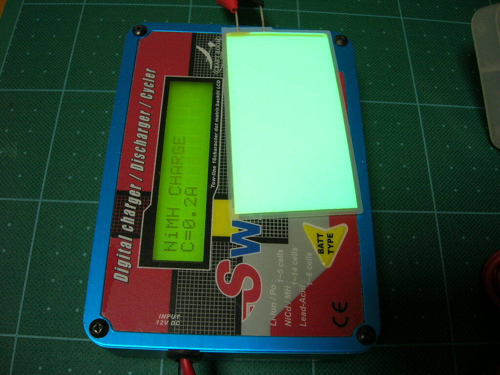 画像は、キャラクタ液晶と並べて、ELシートを電源電圧約2.5Vで点灯しています。