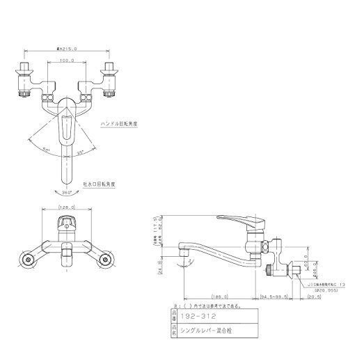 【在庫限りです】【SALE期間中】台所用壁付一般地仕様カクダイクランクの調整が楽々エコ回転クランクシングルレバー混合栓取付簡単給湯制限付