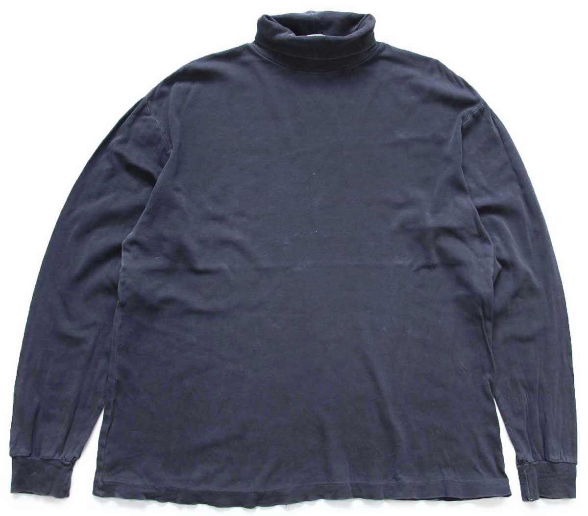 ★90s GAPギャップ 無地 タートルネック コットン 長袖Tシャツ 黒 フェード M★オールド カットソー ロンT ダメージ ブラック 炭黒
