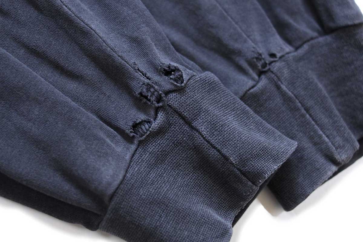 コンディション:着用感があり、全体的に色落ち、裾に細かい小キズ、フロント左ネック付け根に数個のピンホール、背中ネック付け根と袖リブ付け根に少しの擦り切れがあります。致命的なダメージや汚れはなく、味とご理解いただける方でしたら問題なく着用いただける程度です。