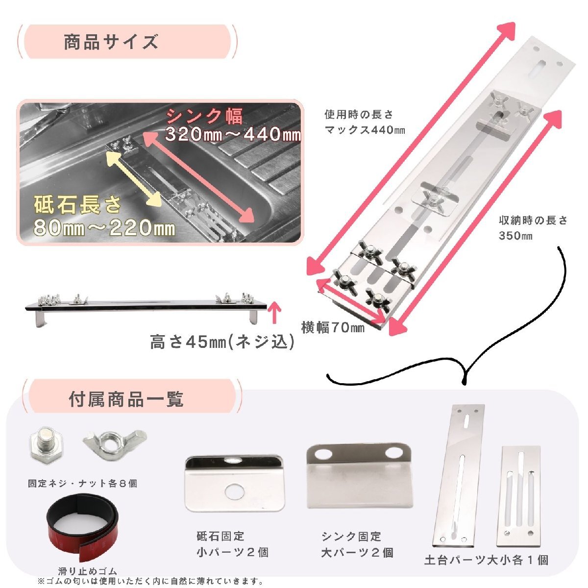 砥石台 シンク 橋渡し 固定台 ホルダー 調整可能 包丁研ぎ キッチン 流し台 滑り止め ステンレス 研ぎ石 砥石 作業台 便利 スペース 1-