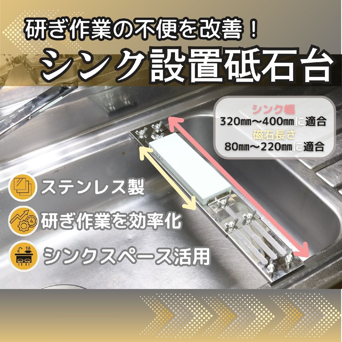 • 【スペースの有効活用】シンクに橋渡しのように設置するので小スペースで作業可能!狭いキッチンでも包丁研ぎスペースを確保できるたコンパクトな台所にもオススメ!