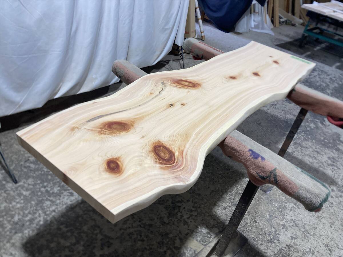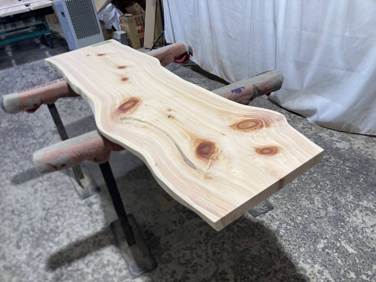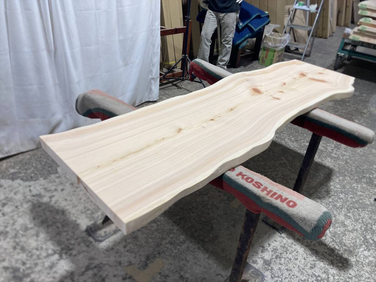 プレナーにて平面出し処理の後、耳を研磨し240番のペーパーで仕上げております。