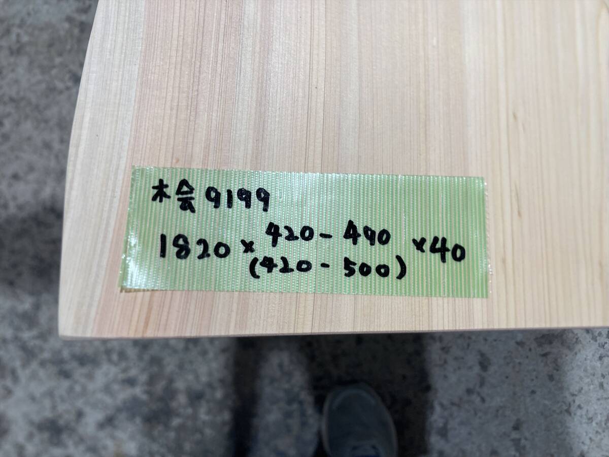 桧9199 一枚板無垢 乾燥材 1820x420-490x40mm ヒノキ 檜 カウンター センターテーブル ダイニングテーブル